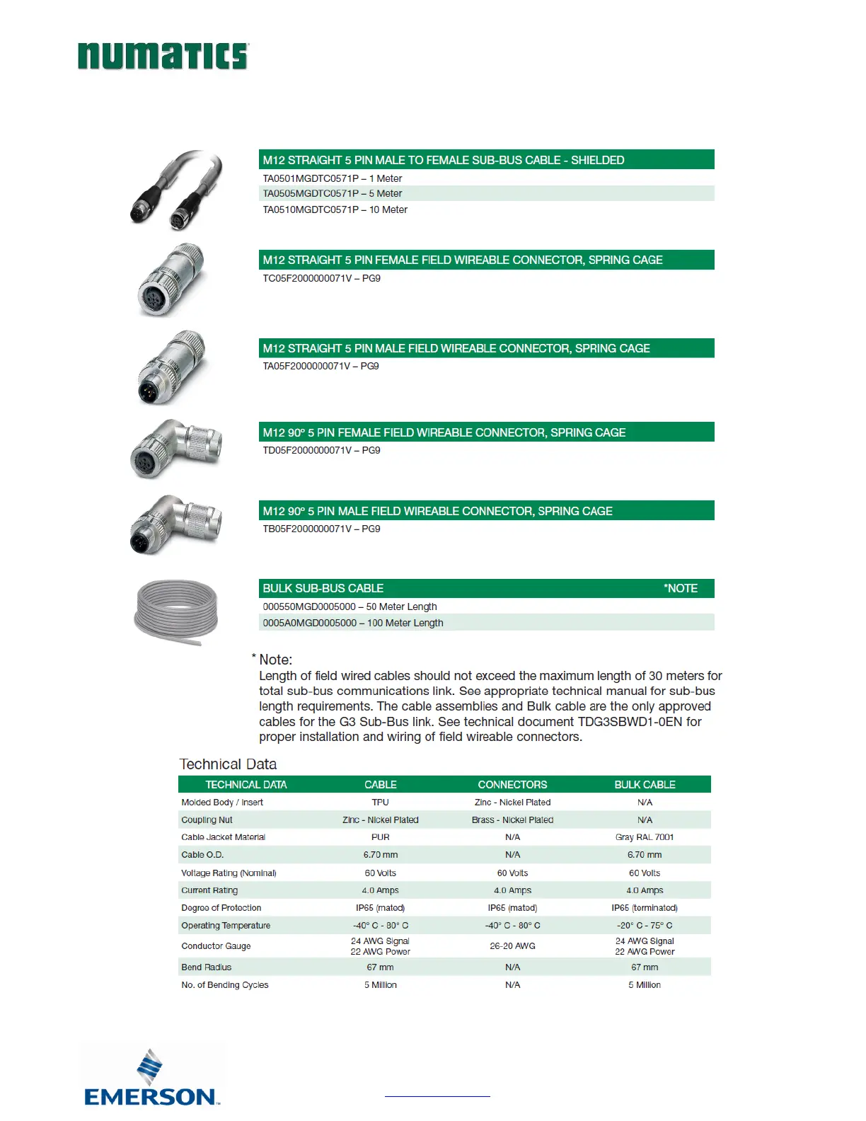 Numatics G3 Series - Sub-Bus Cables