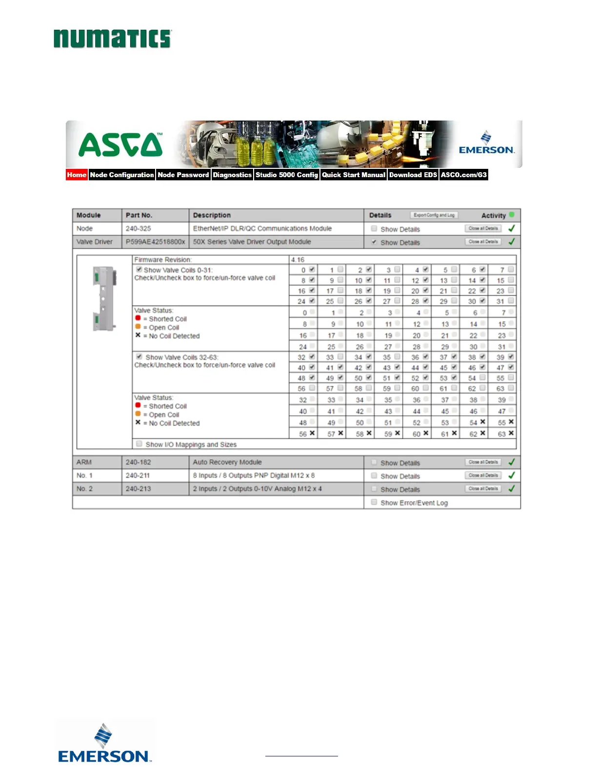 The following is an example of the G3 diagnostic webpage “Diagnostics” which identifies the details of the valve driver’s