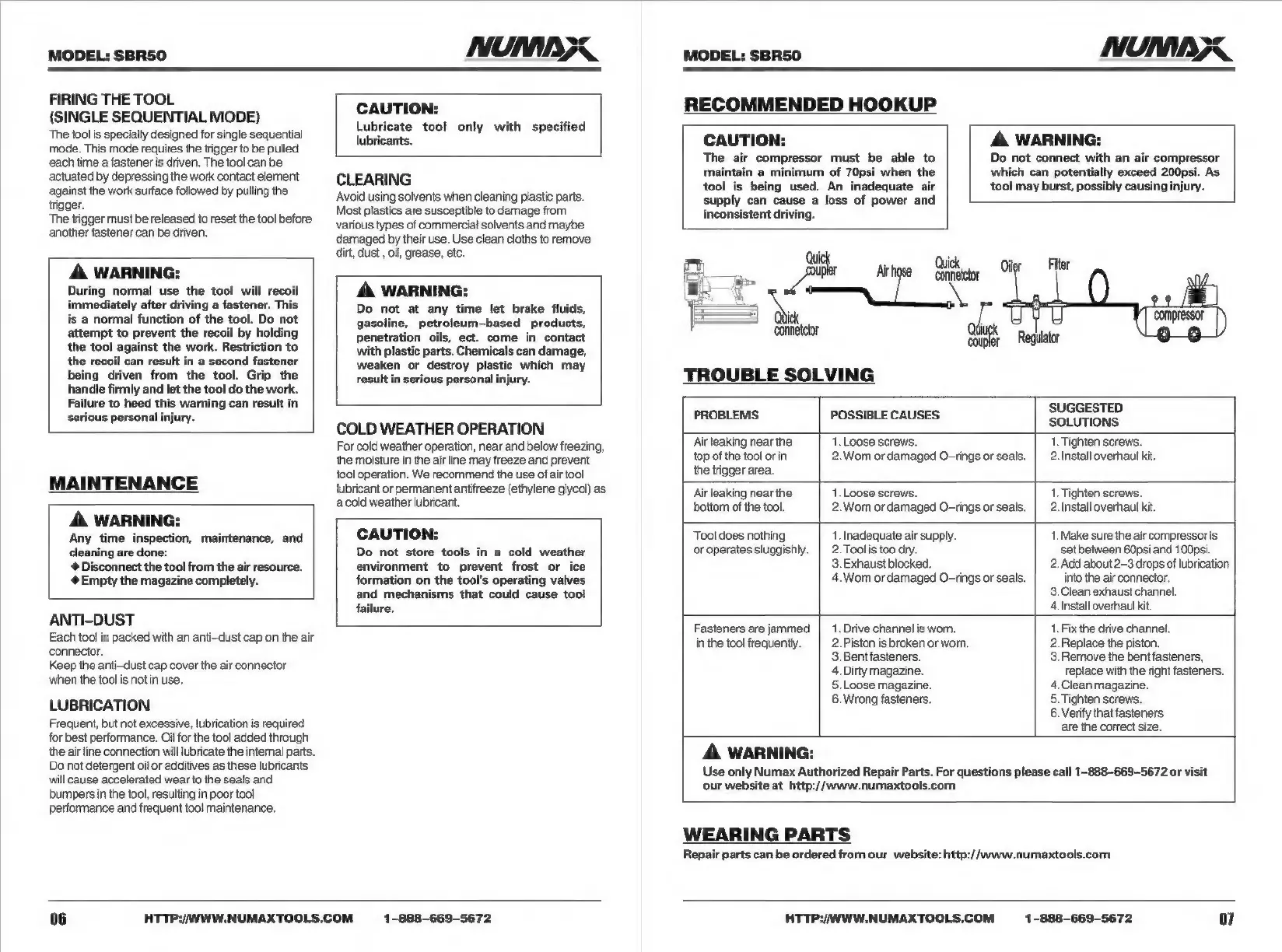 Numax SBR50 - Recommended Hookup; Wearing Parts
