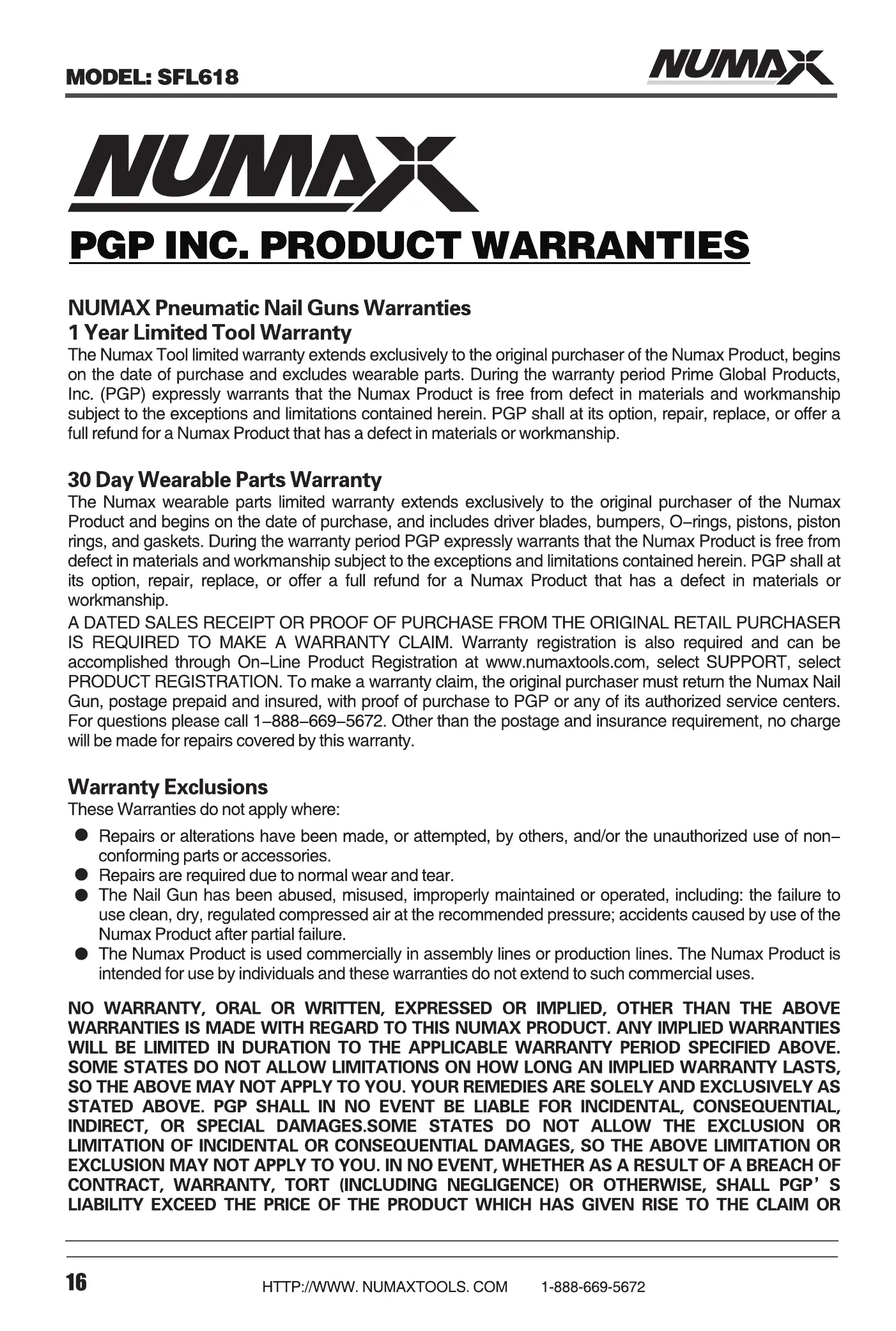 PRODUCT REGISTRATION. To make a warranty claim, the original purchaser must return the Numax Nail
