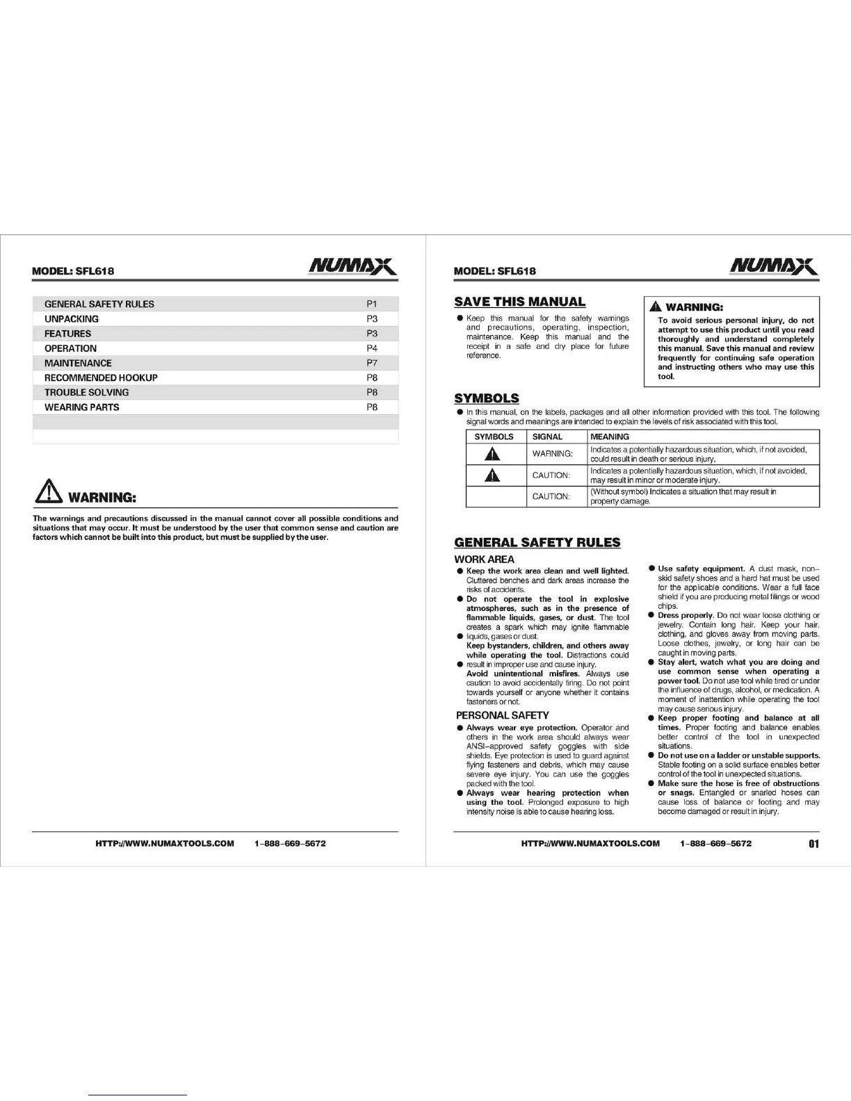 Numaxes sfl618 - General Safety Rules; Work Area Safety; Personal Safety