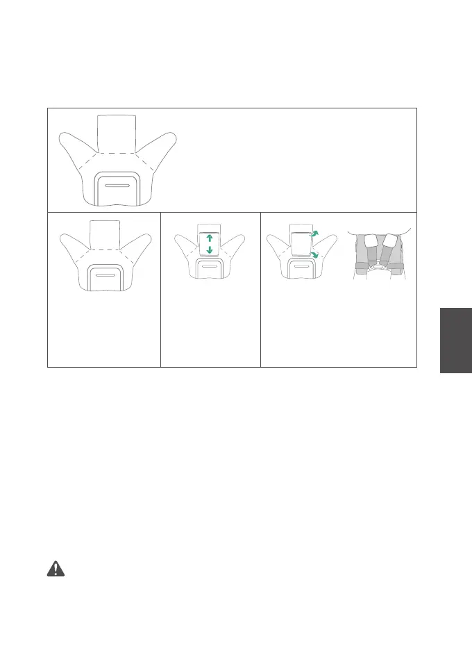 4 4 Stram til skulderselene ved å trekke i justeringsselen.