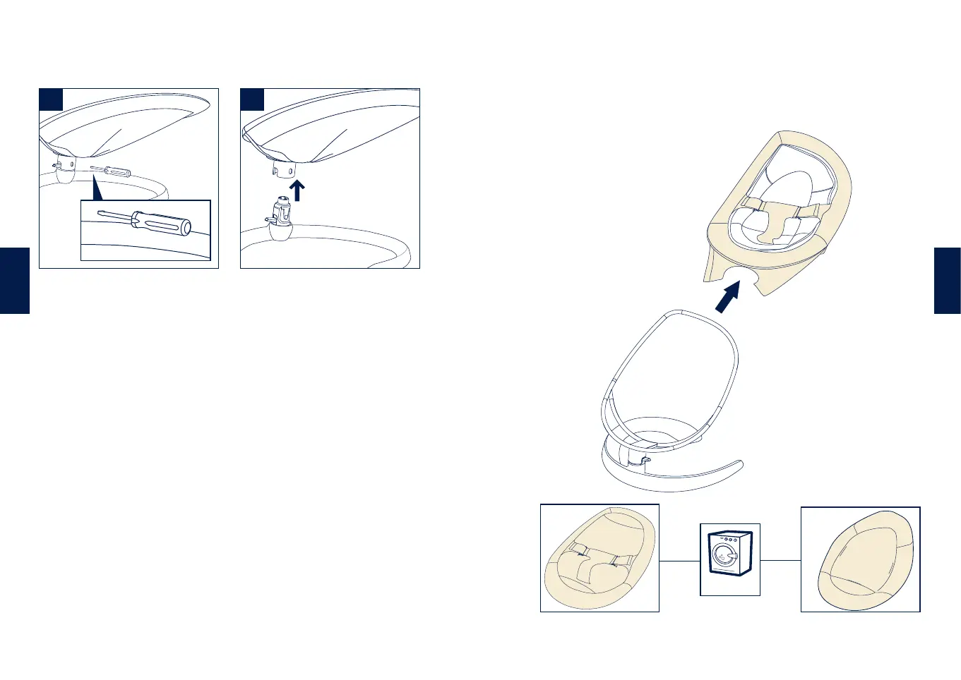Laver la housse et la doublure à la machine. Nettoyer la base