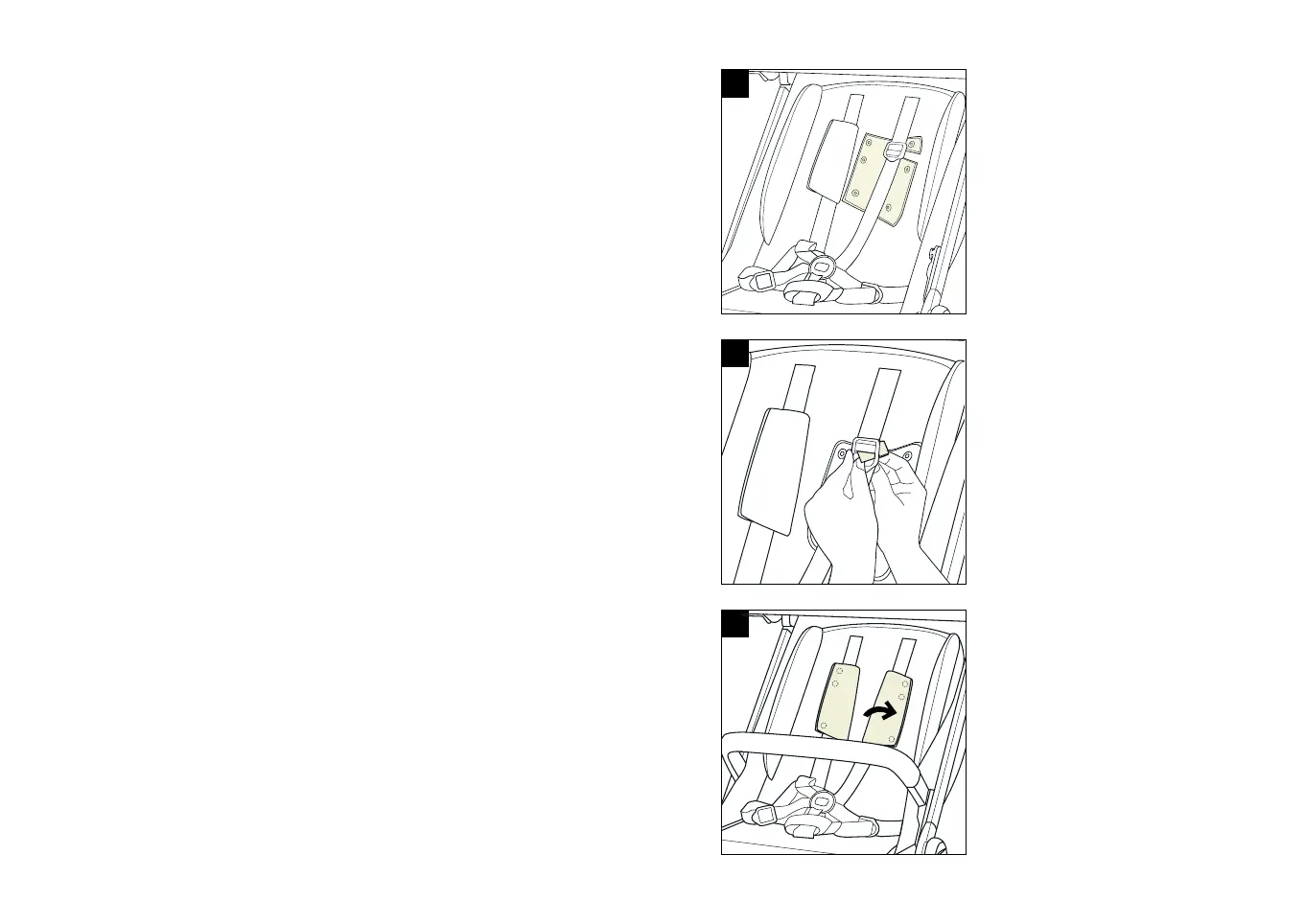 1 - To put on the harness pads, slide the pad under the