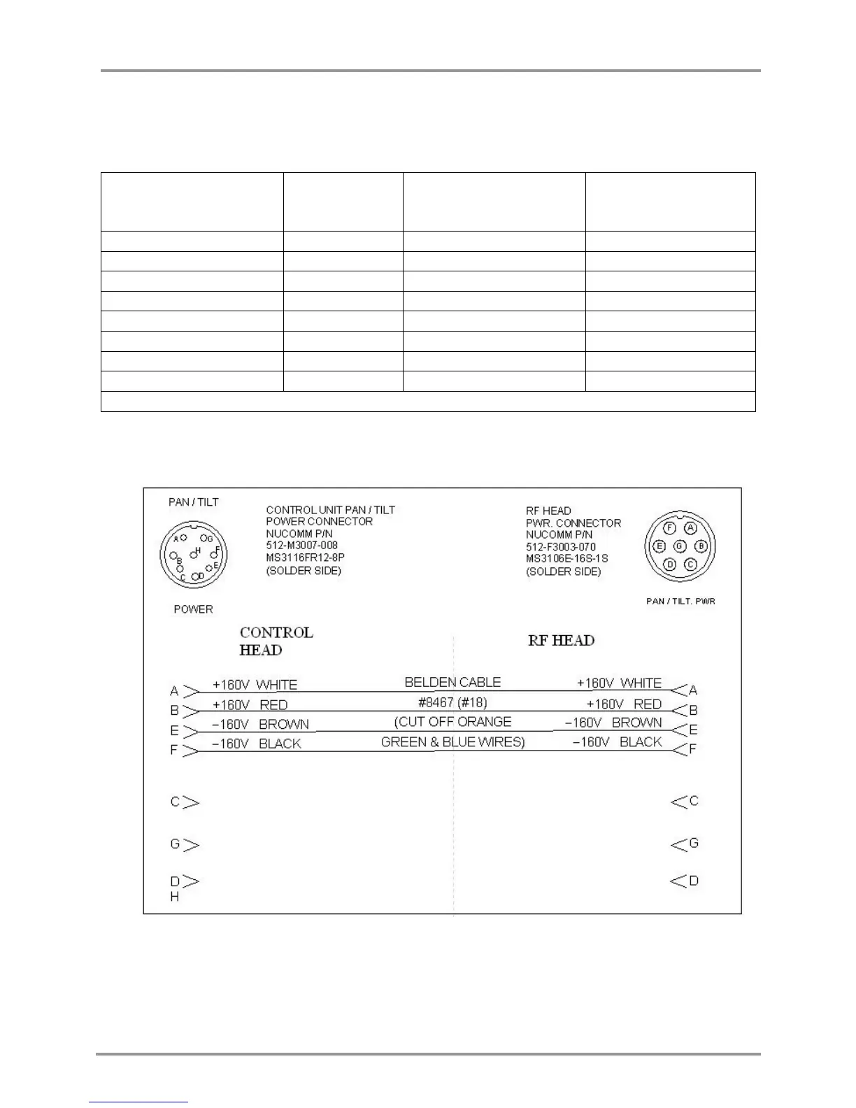 Table 9: Pan & Tilt Power (120 VAC) Connector Pin-outs