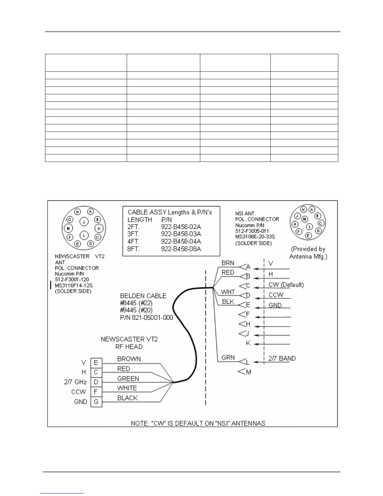 Table 12: NSI Quad Antenna Polarization Connector Pin Out