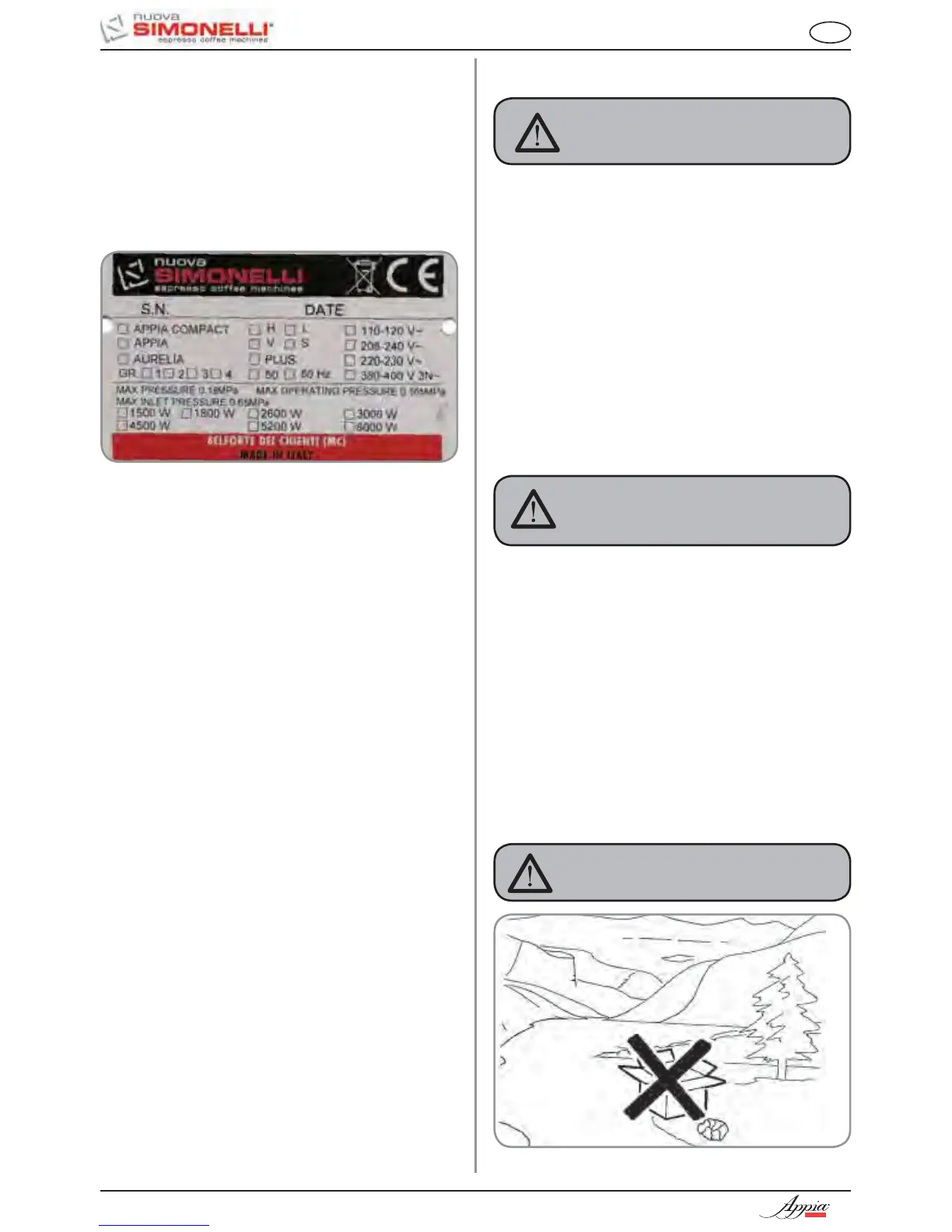 munications to the manufacturer, Nuova Simonelli.