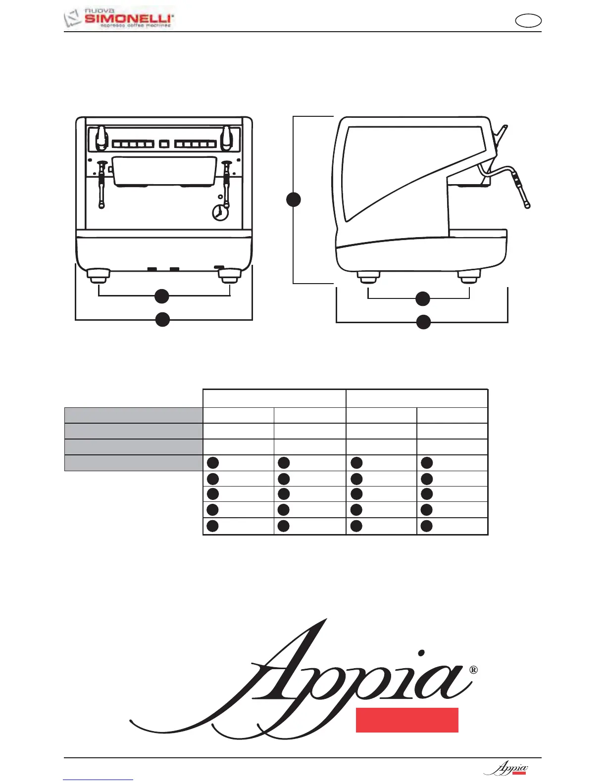 Nuova Simonelli Appia Compact - TECHNICAL CHARACTERISTICS