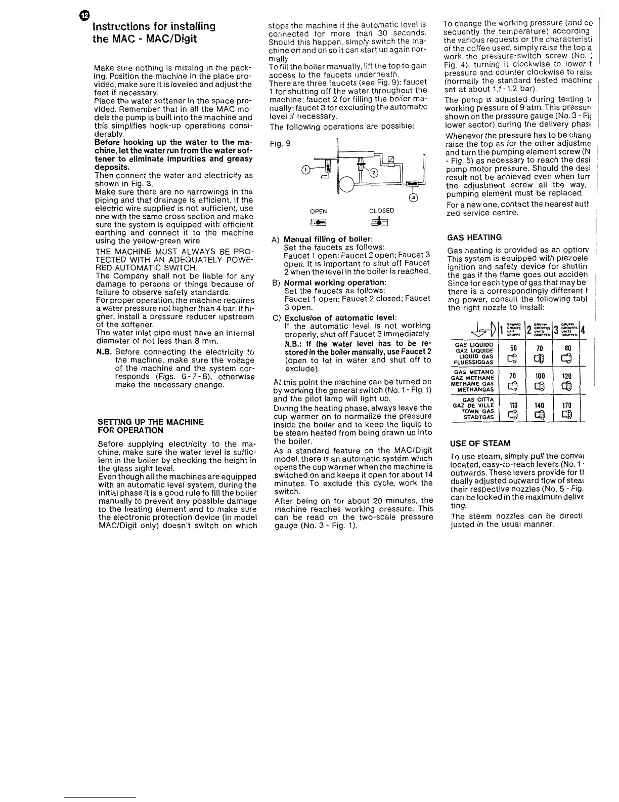 Nuova Simonelli MAC - Installation and Initial Setup; Machine Placement and Connections; Safety and Voltage Checks; Machine Operation Setup