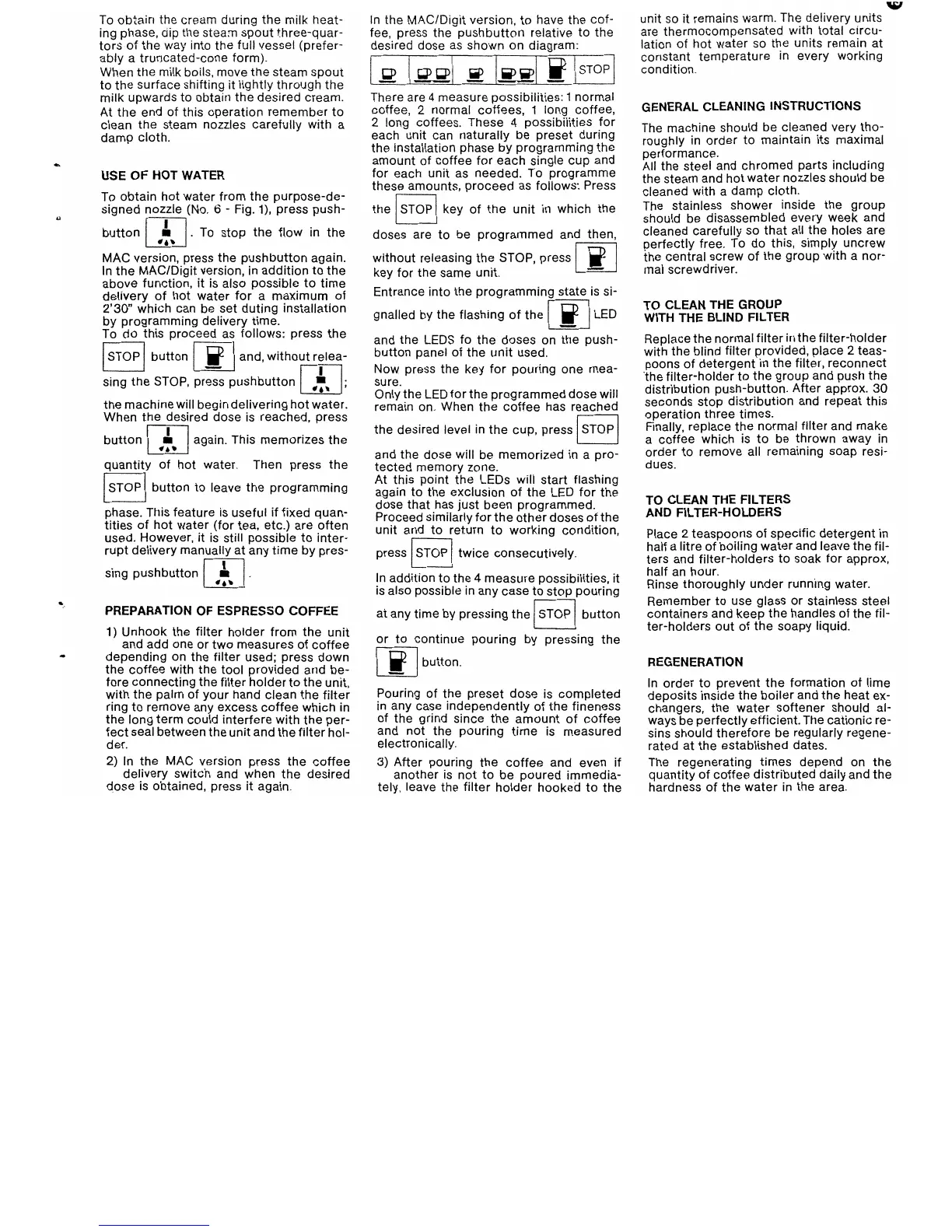 Nuova Simonelli MAC - Maintenance and Cleaning Procedures; Milk Frothing and Hot Water Dispensing; Espresso Preparation Steps; General Cleaning and Group Cleaning