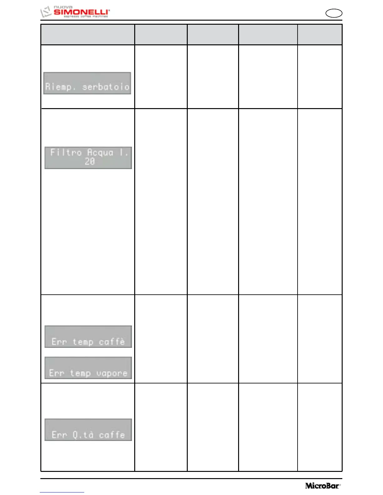 INDICAZIONE DISPLAY CAUSA EFFETTO SOLUZIONE NOTA