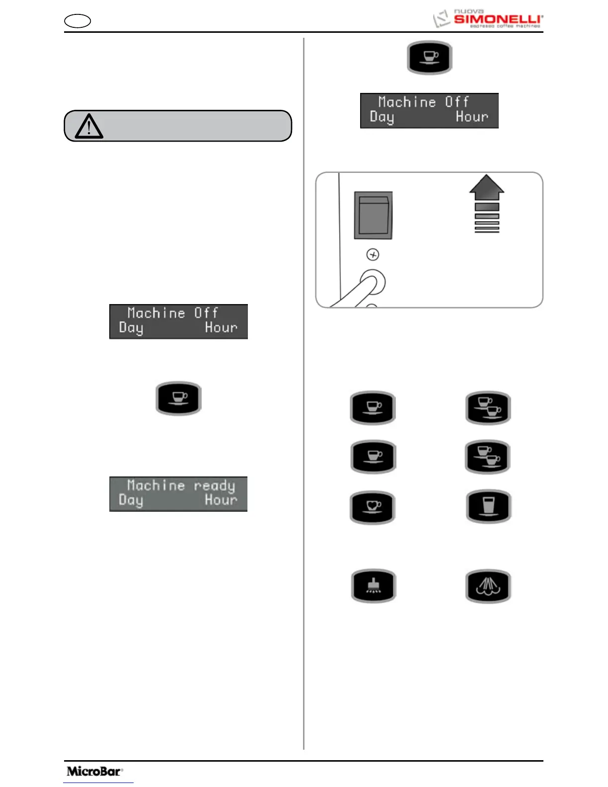 •To switch the machine on definitively, press the
