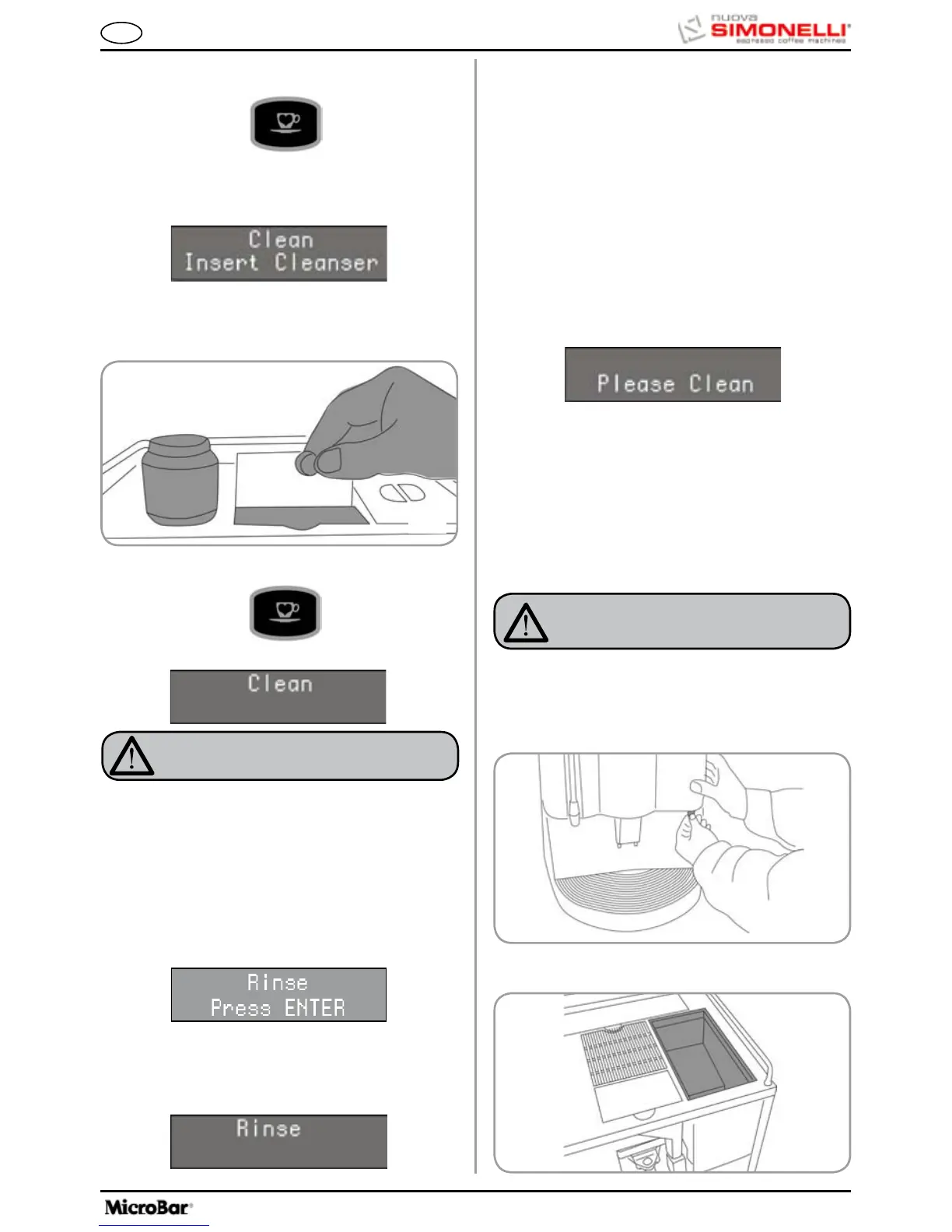 ENTER key; the machine will perform a rinse cycle