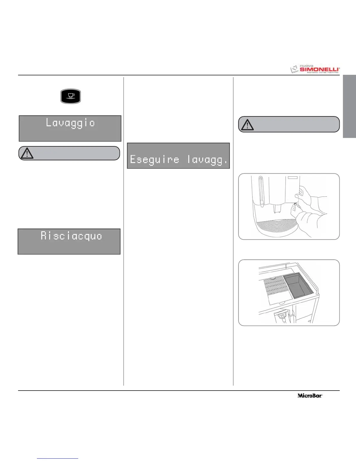 NOTA:Durante la fase di lavaggio e risciacquo