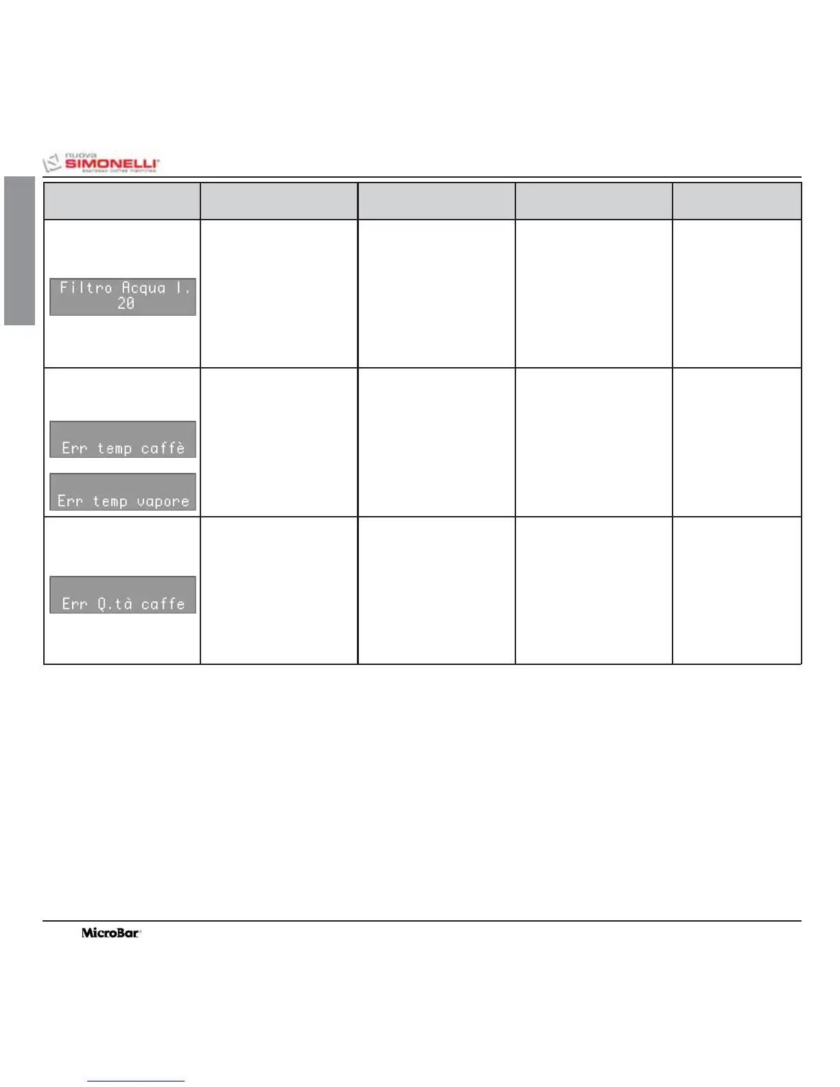 Non viene erogato il caffè. Sostituire la sonda guasta. Questo allarme blocca le
