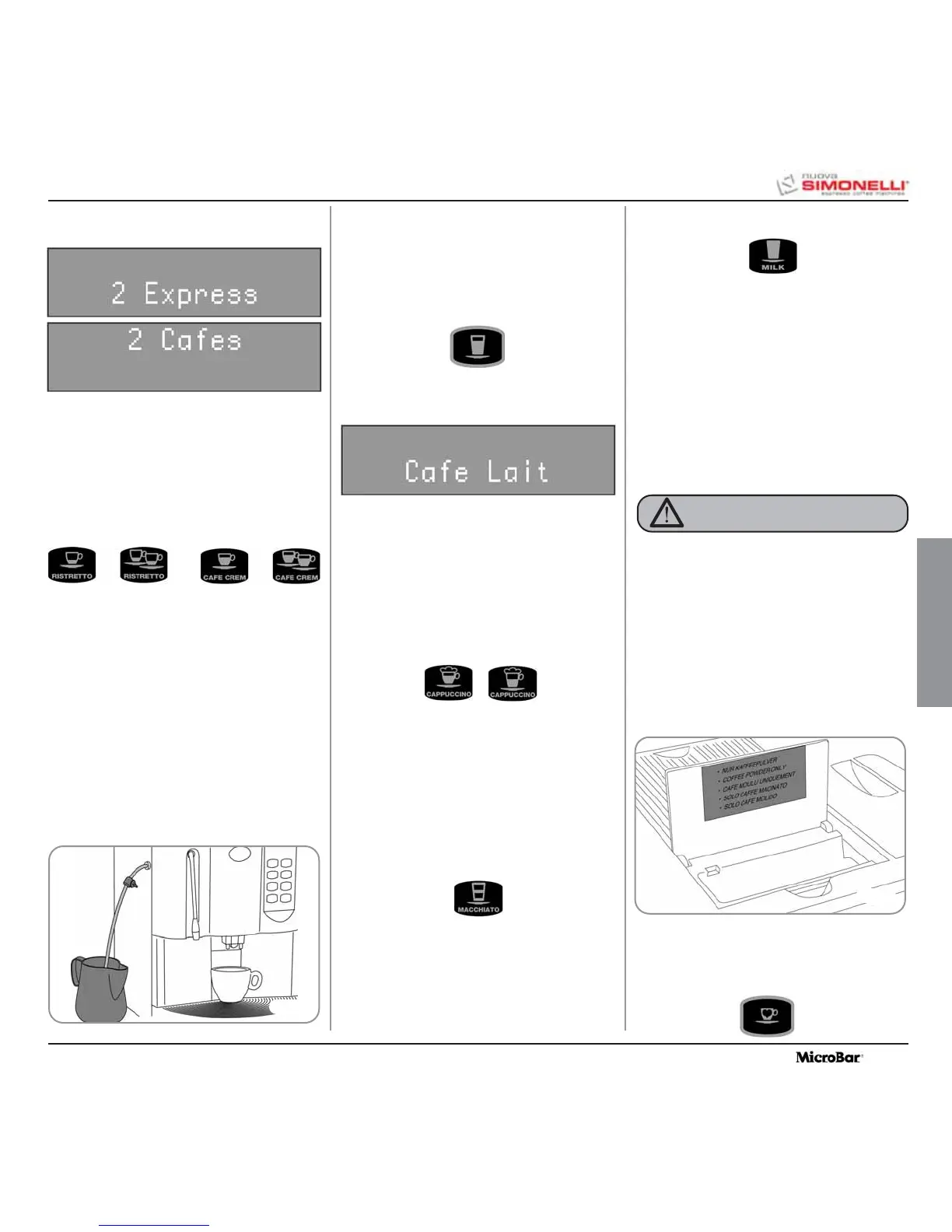 le Café expresso et pour le Café léger (voir