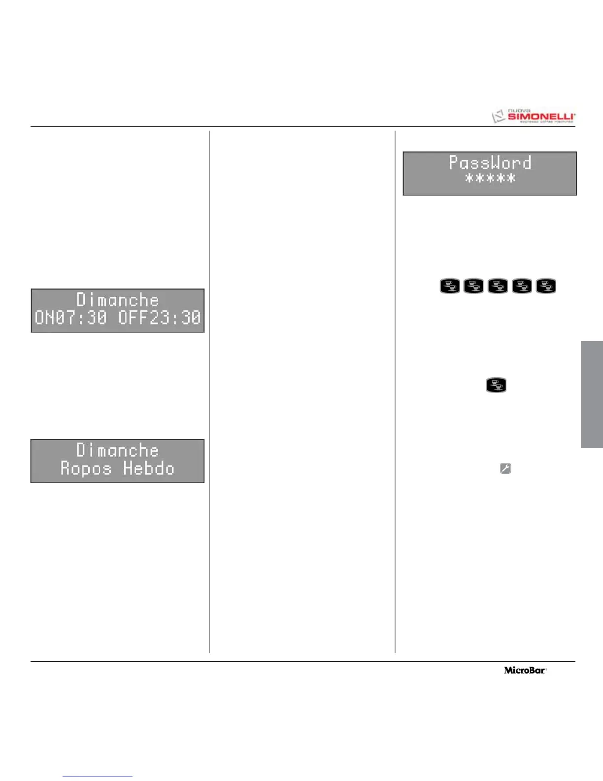 Par défaut, la machine est programmée