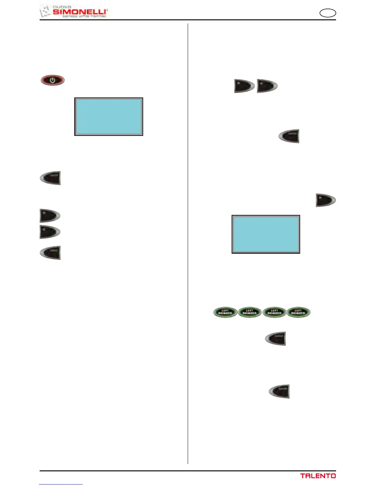 sottomenù, tutti i tasti delle bevande (1-10) lampeg-