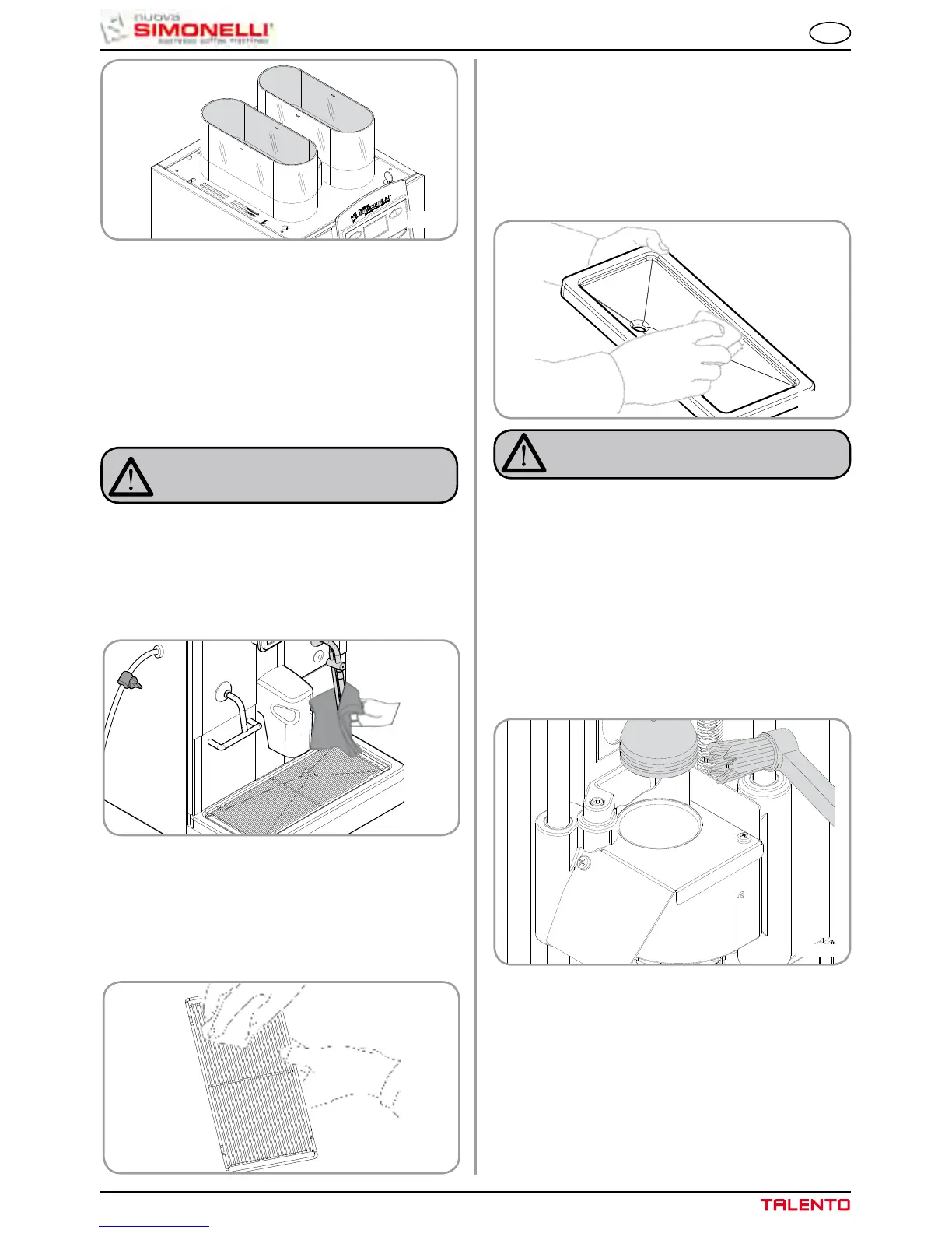 • Pulire il contenitore raccogligocce con acqua