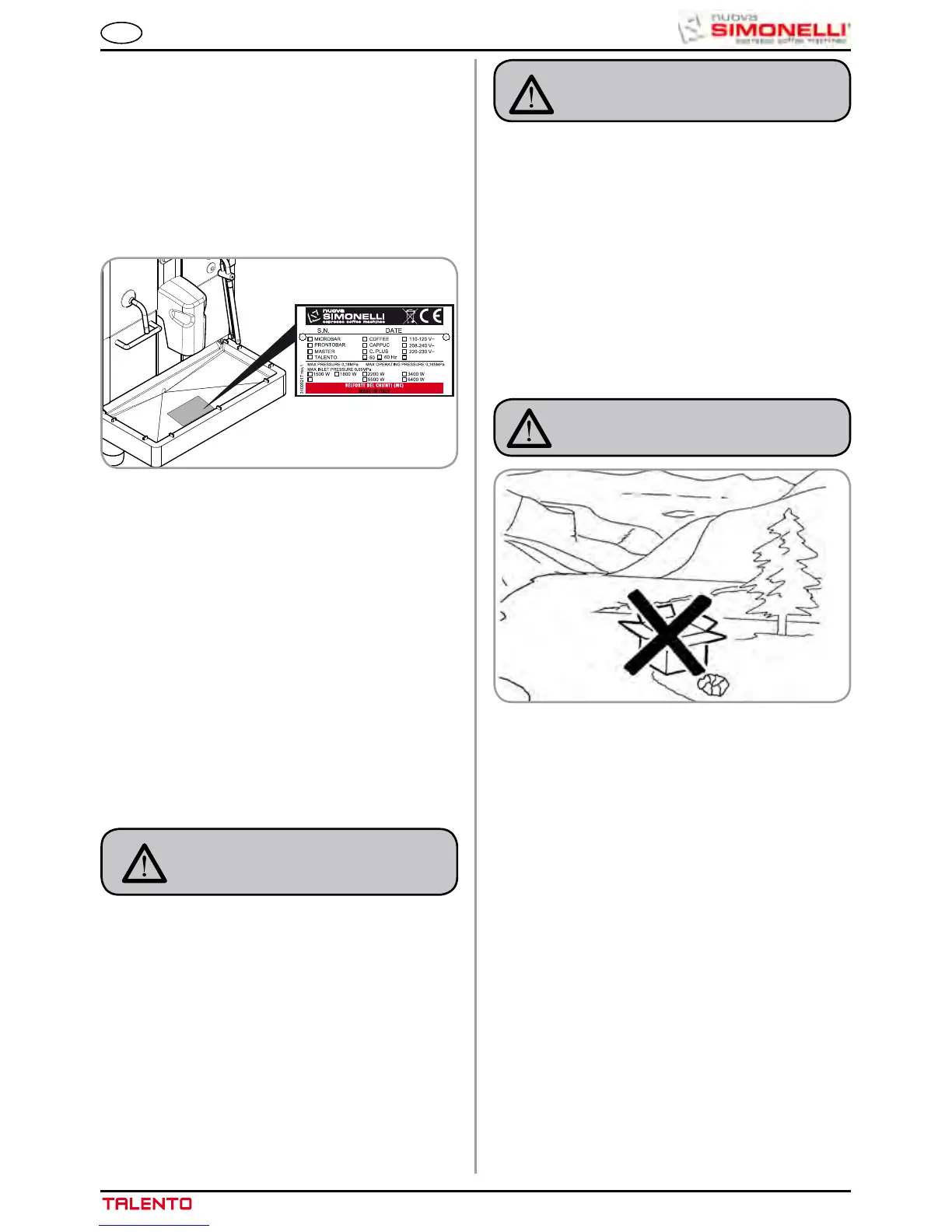 Simonelli, indiquer toujours le numéro de série