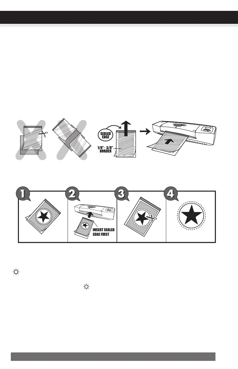 tion. DO NOT CUT LAMINATING POUCH TO FIT ITEM BEFORE LAMINATION.