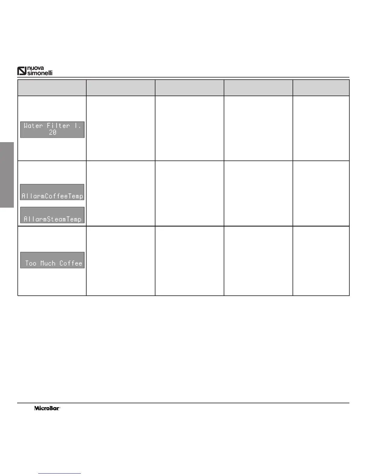 Coffee will not be delivered. Substitute the broken probe. This alarm blocks all