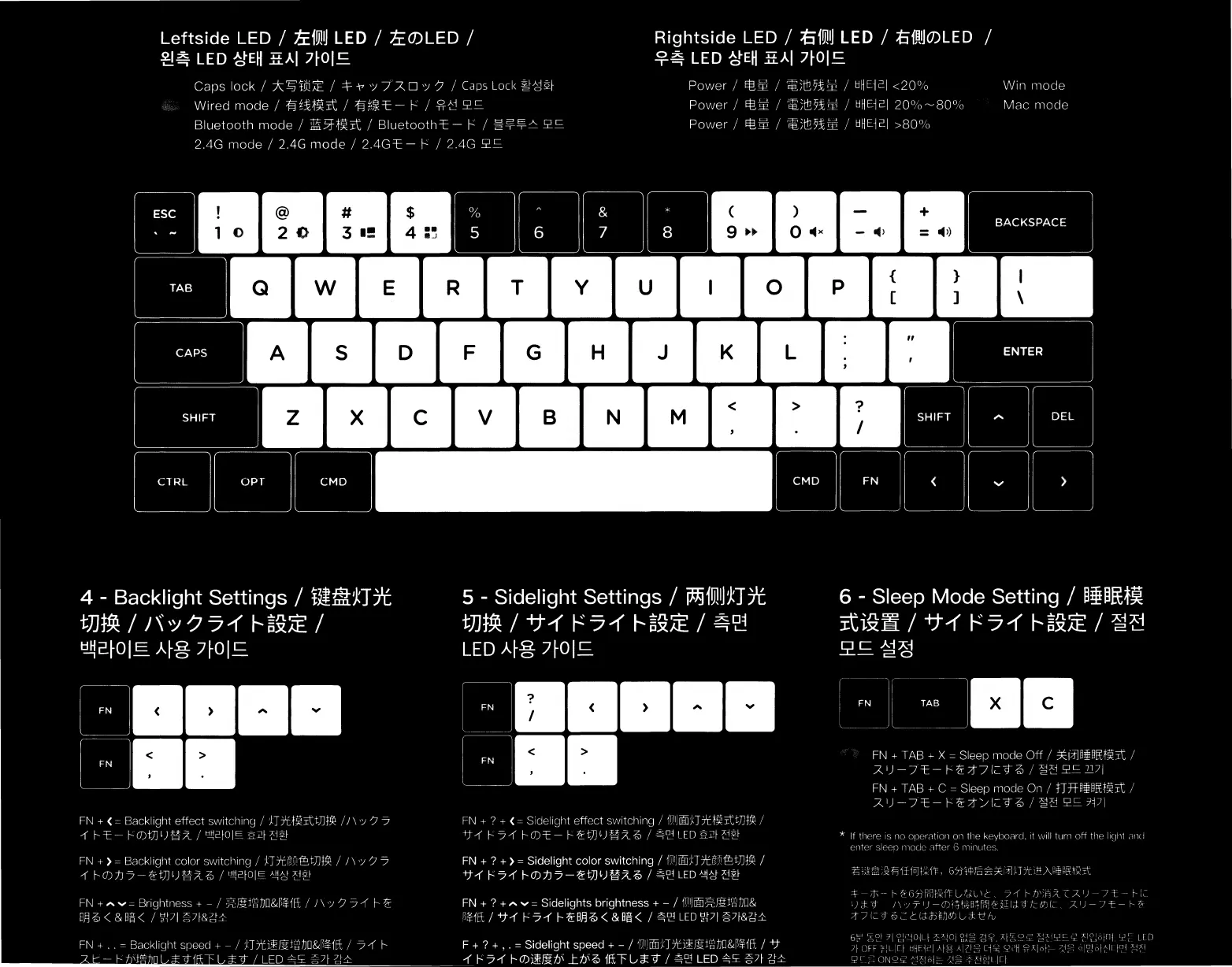 NuPhy Air 60 - LED Status Indicators; Leftside LEDs; Rightside LEDs; Keyboard Lighting Settings