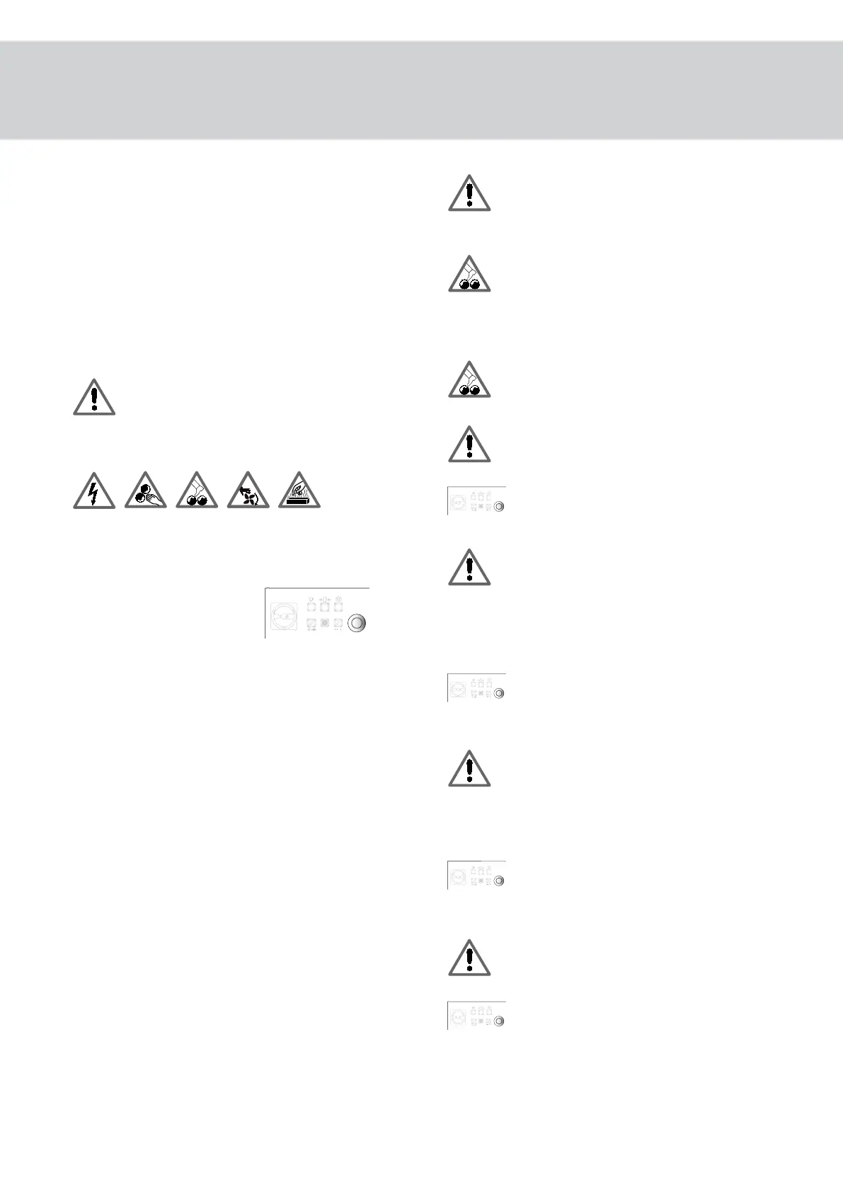 Stromschlag, Verletzungsgefahr, Verbrennungsgefahr usw.