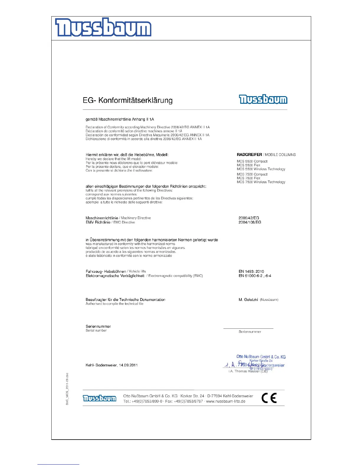 Nussbaum MCS 5500 ND WIRELESS - Declaration of Conformity