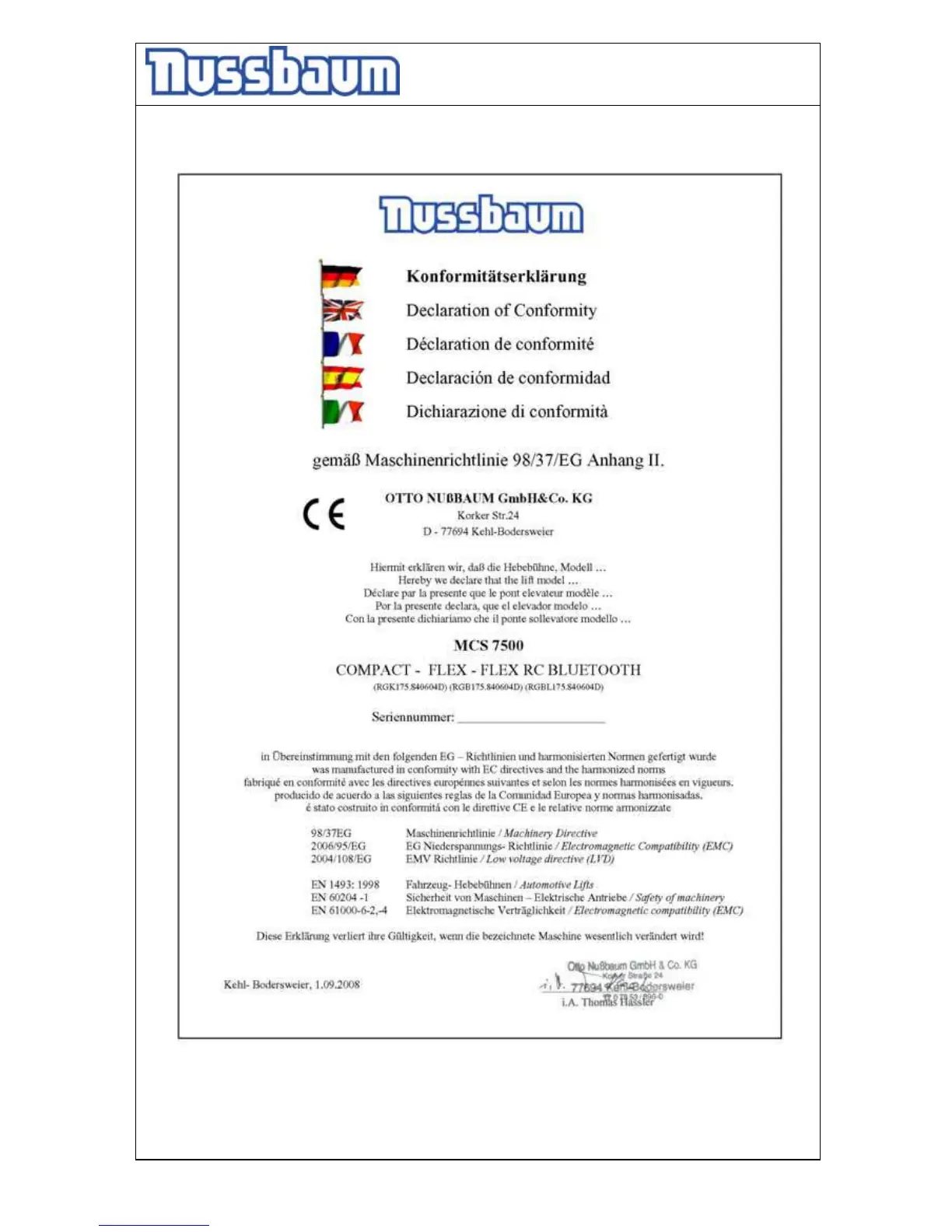 Nussbaum MCS 7500 - 2.4 Declaration of conformity