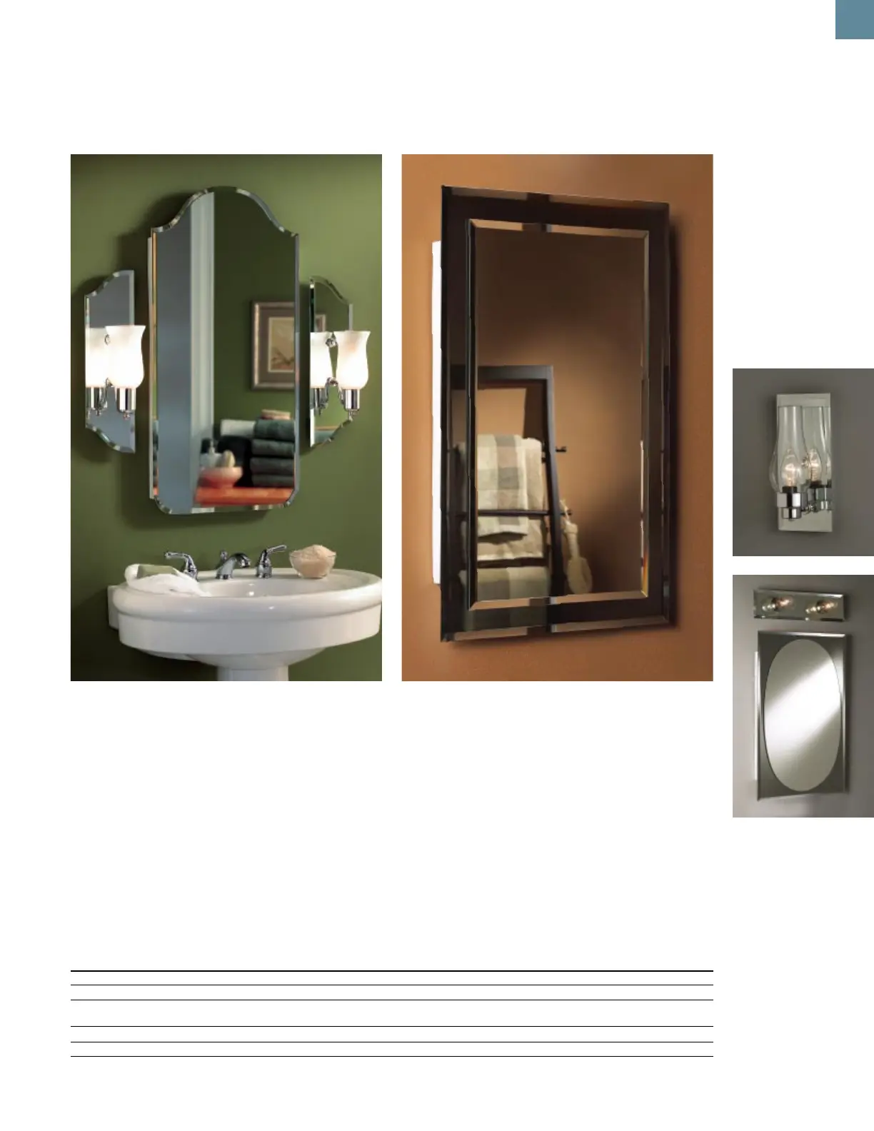 Model Frame Door Mirror Overall Size Wall Opening Top Light Kit Side Light Kit