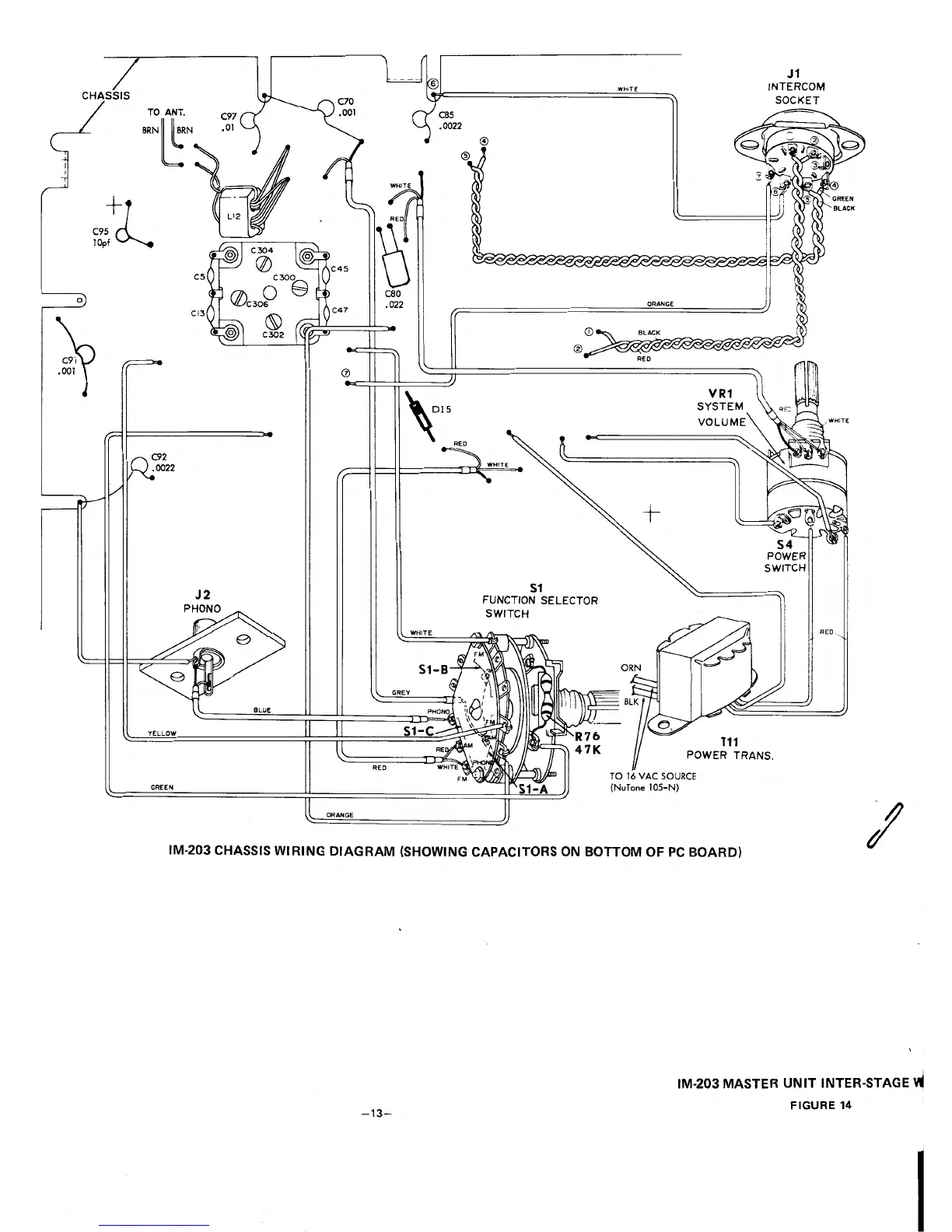 NuTone IM-203 - Master Unit Chassis Wiring Diagram; Inter-Stage Wiring Diagram