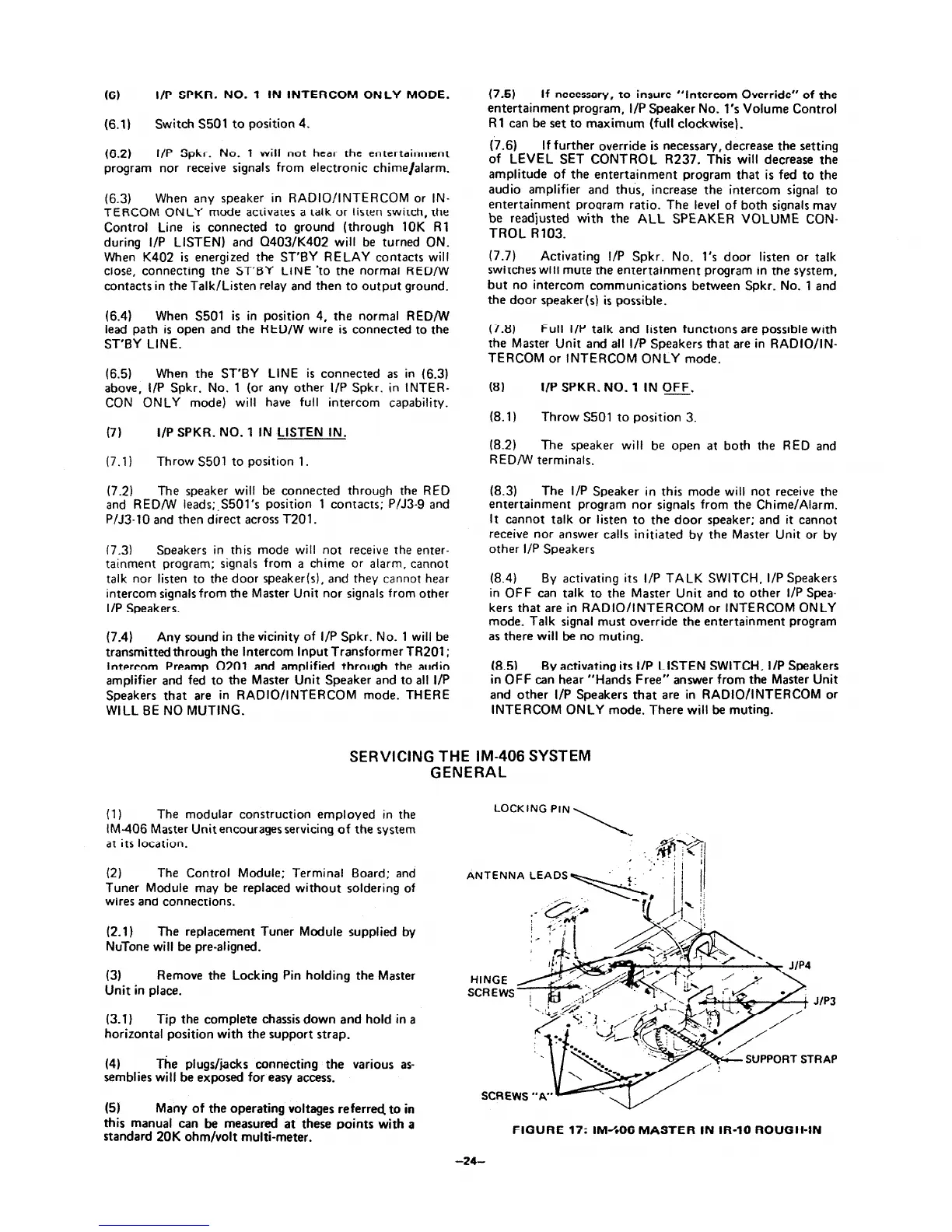NuTone im-406 - Servicing the IM-406 System