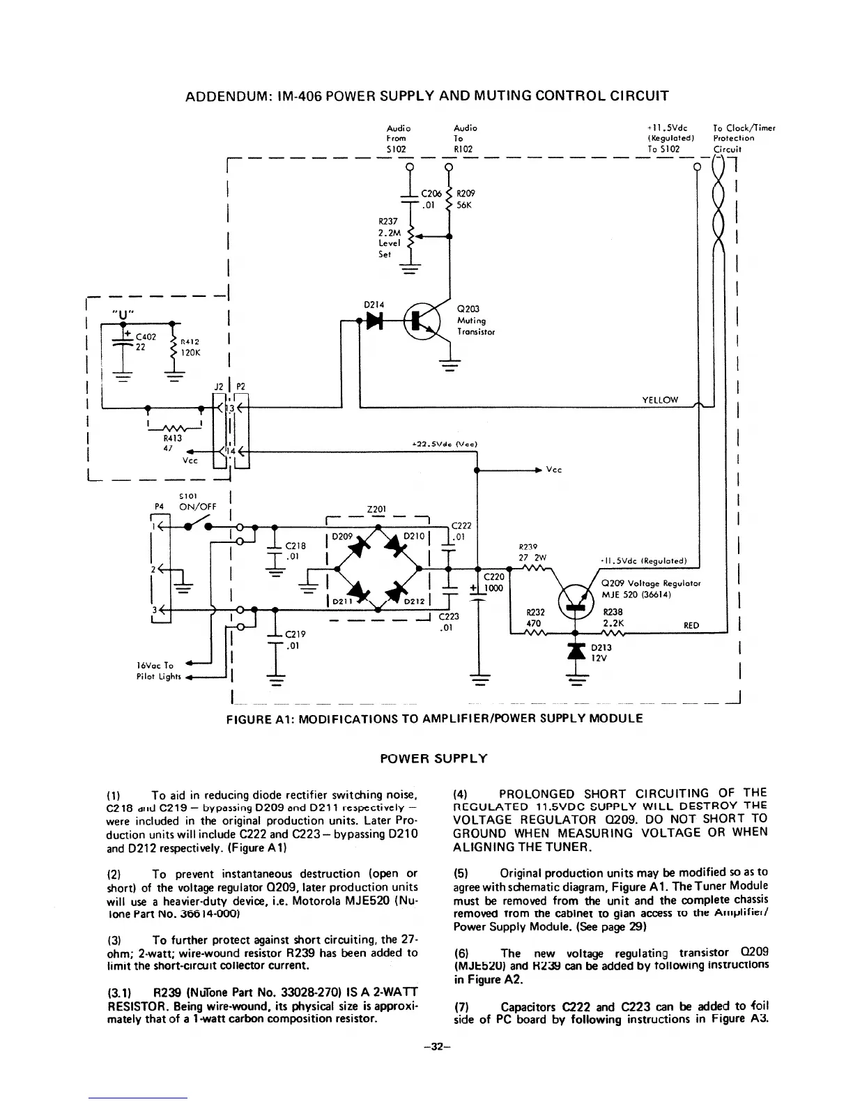 NuTone im-406 - IM-406 Power Supply and Muting Control Circuit; Modifications to Amplifier;Power Supply Module