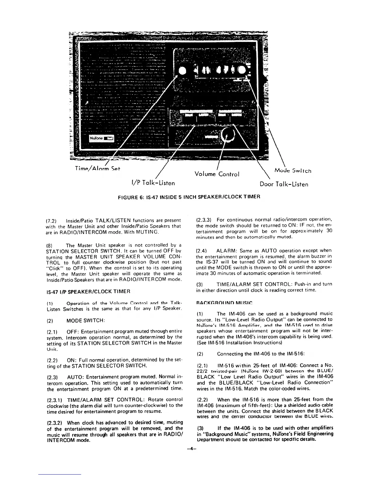 NuTone im-406 - IS-47 I;P Speaker;Clock Timer; Background Music