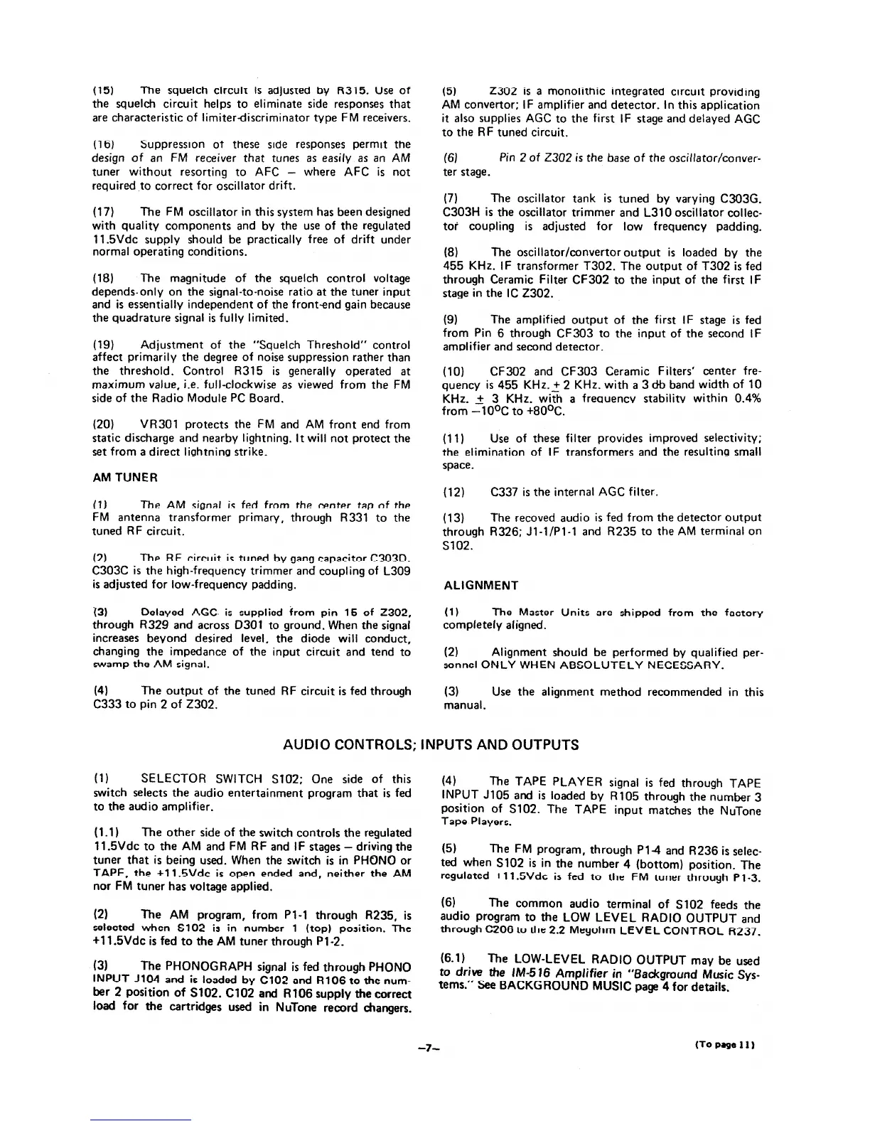NuTone im-406 - Audio Controls, Inputs and Outputs; AM Tuner; Alignment