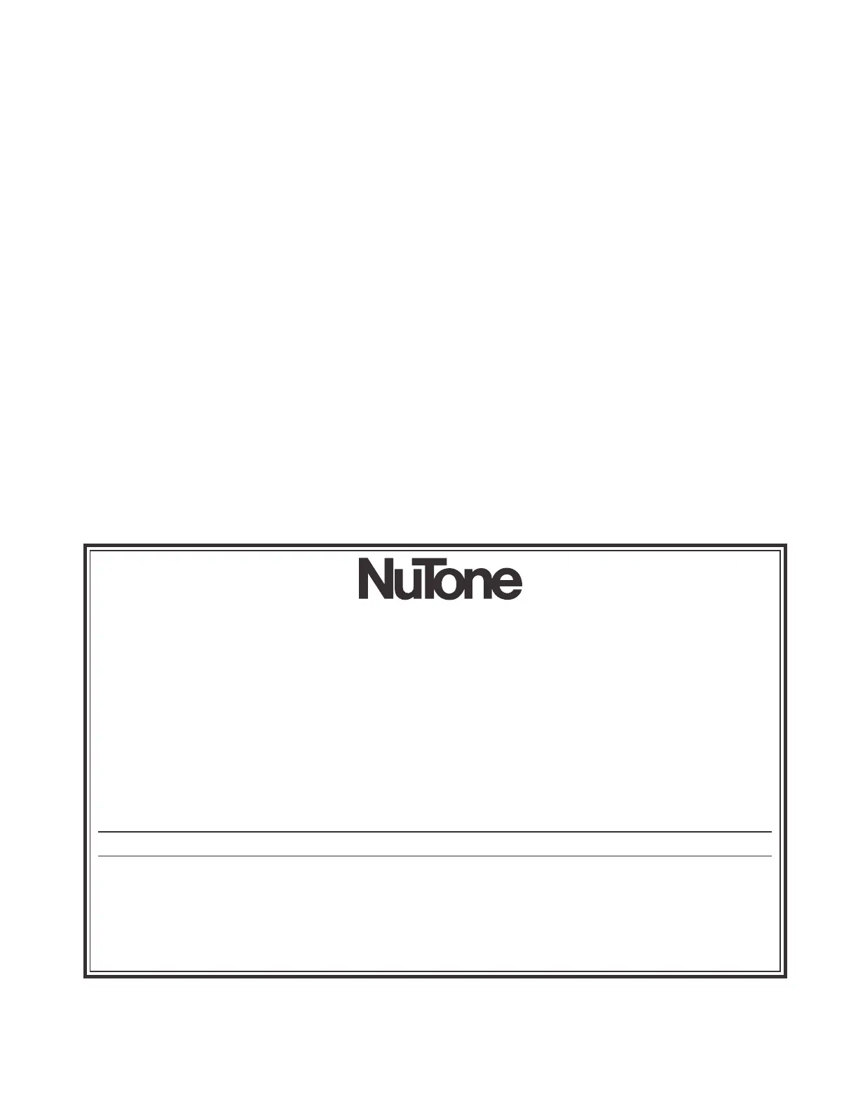 Residents of Canada should write to: NuTone Canada Inc., 6300 Tomken Road, Mississauga, Ontario, Canada L5T 1N2.