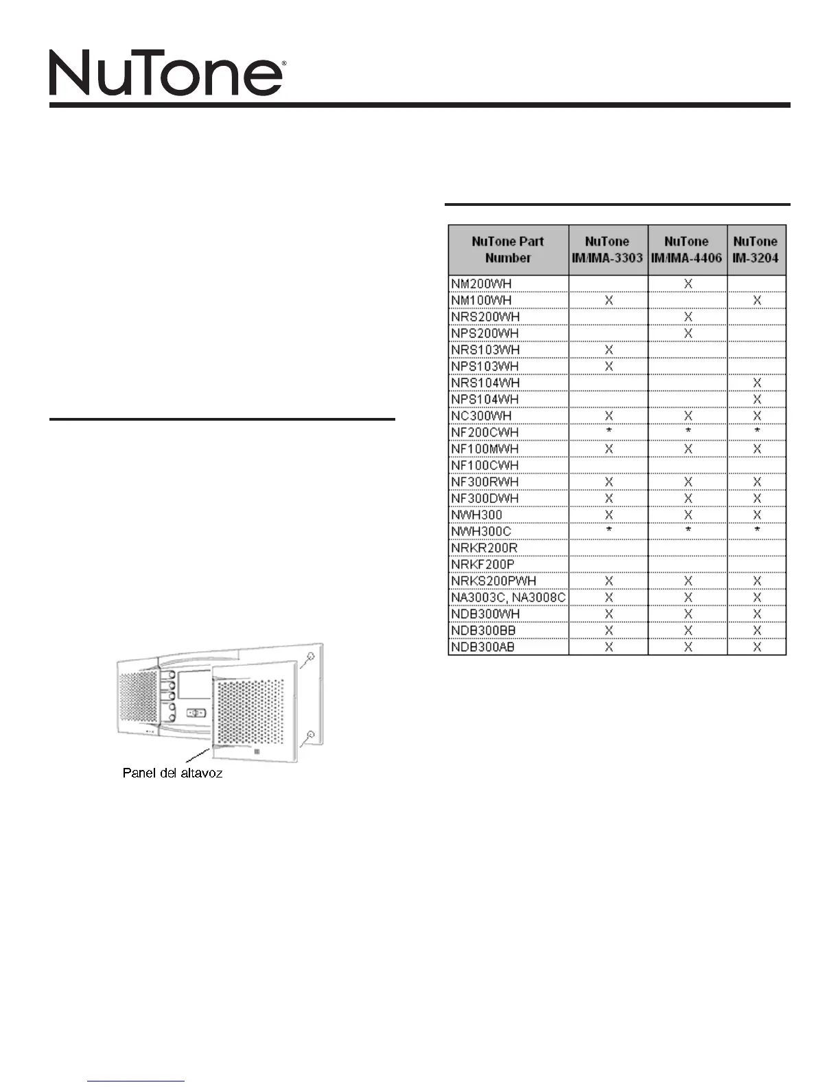 • NF300DWH – Se utiliza en reemplazos de estaciones NuTone