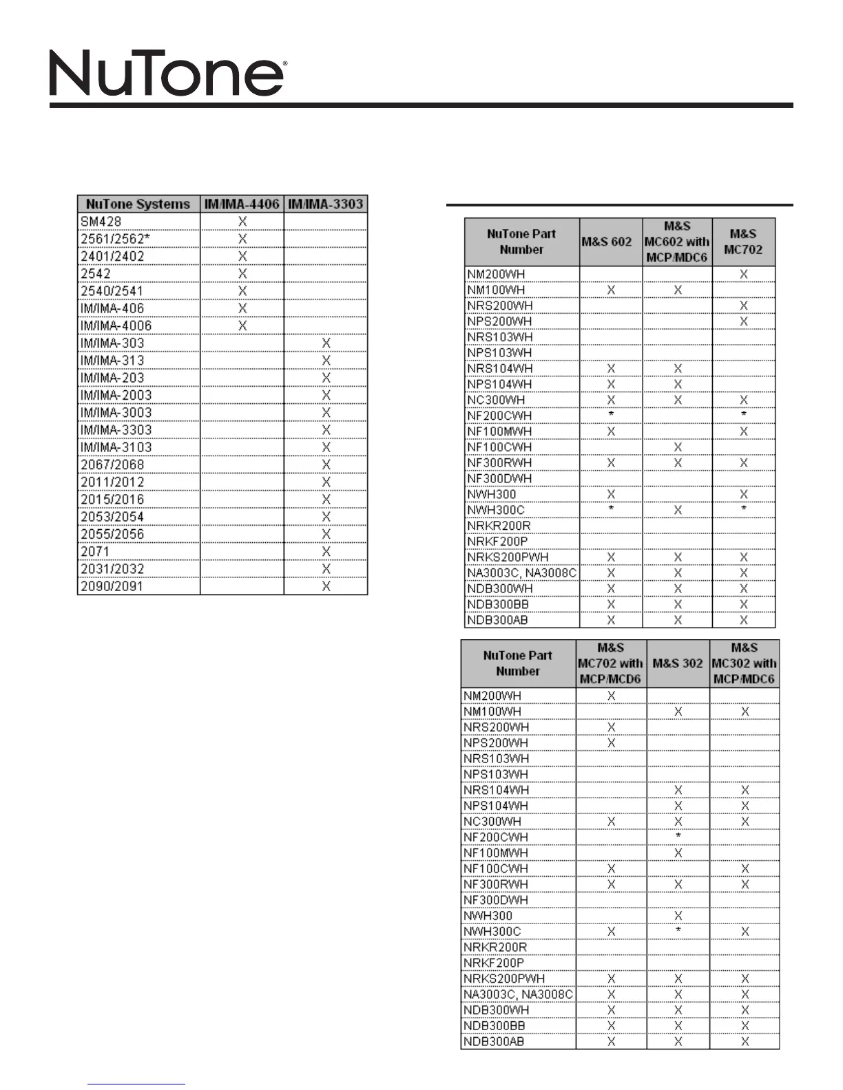 The following NuTone systems map to either the IM-3303 or IM-