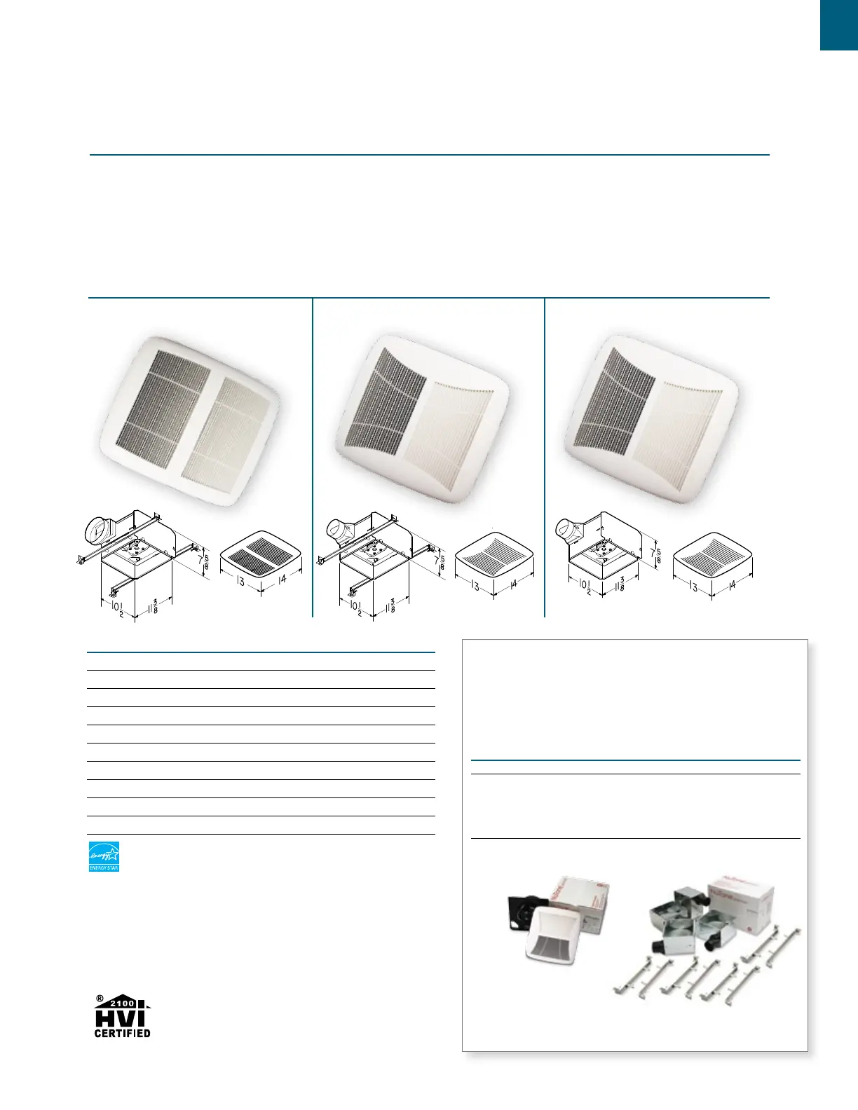 Fan Model CFM Sones Energy Star Bath Sq. Ft. Ducting
