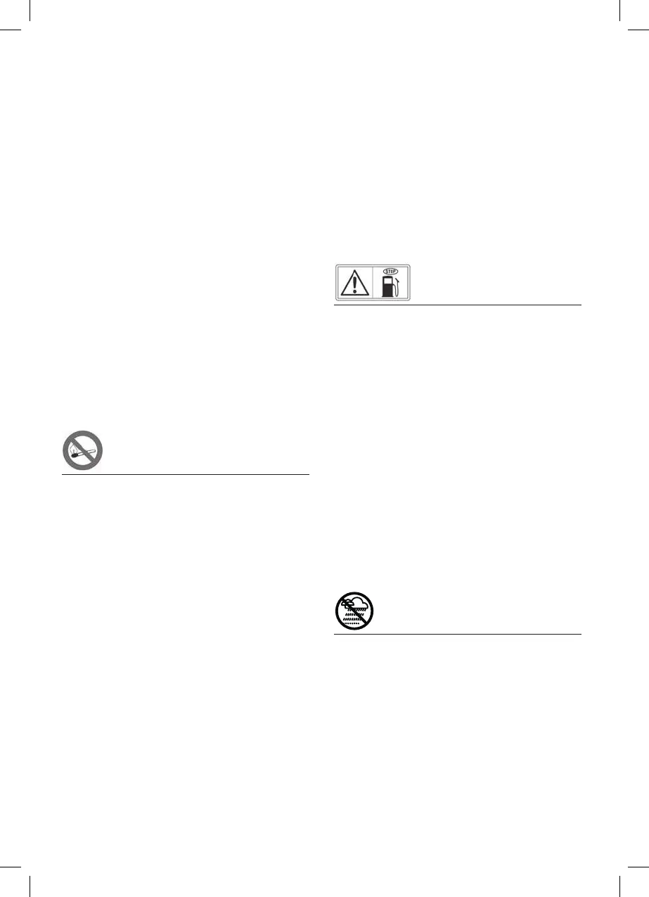 Μην καπνίζετε ή αποφεύγετε φλόγες ή σπίθες όταν γεμίζετε με καύσιμα τη