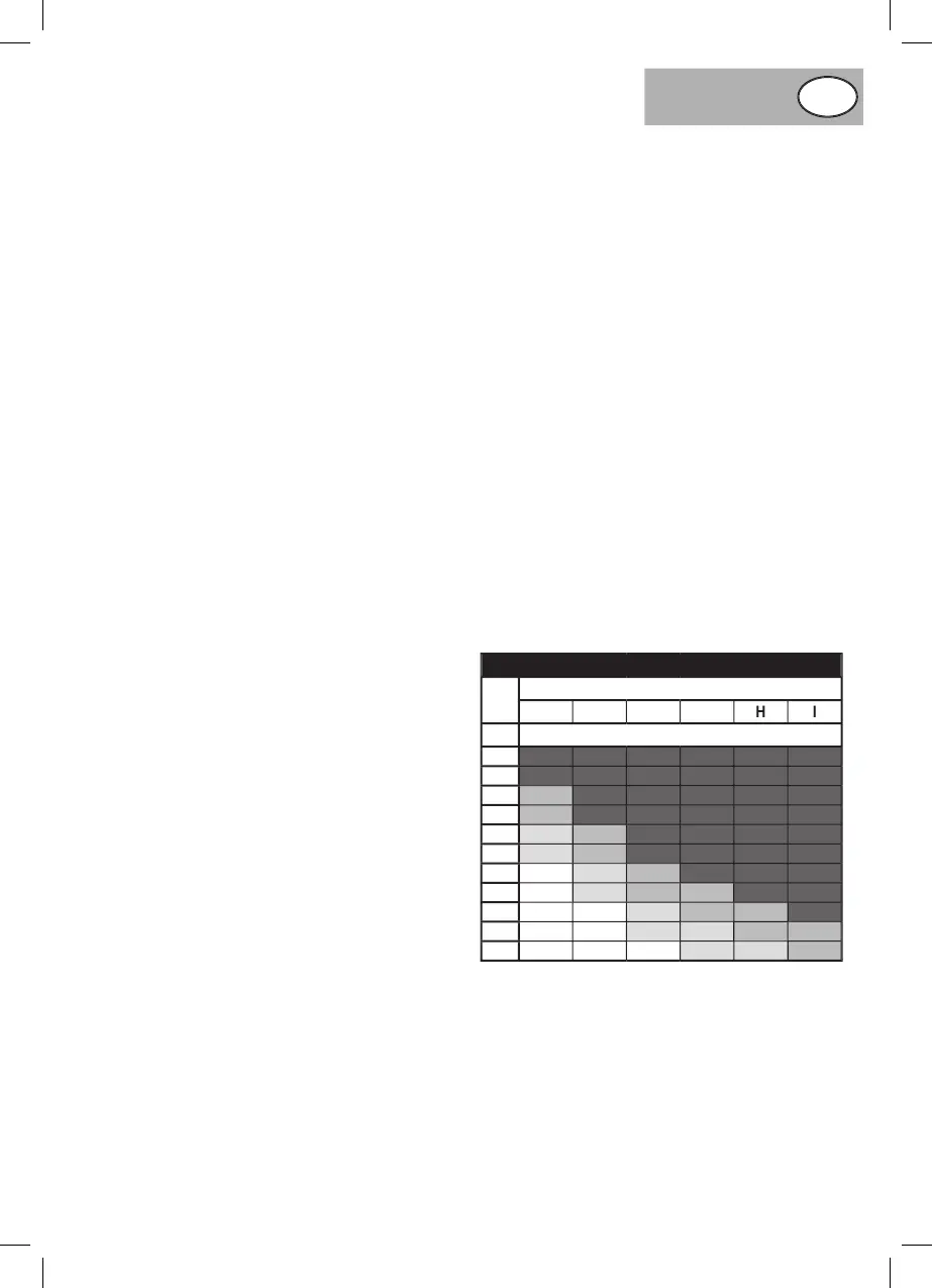 razvidno iz tabele vrtljajev. Odvijte obe krilni matici na straneh