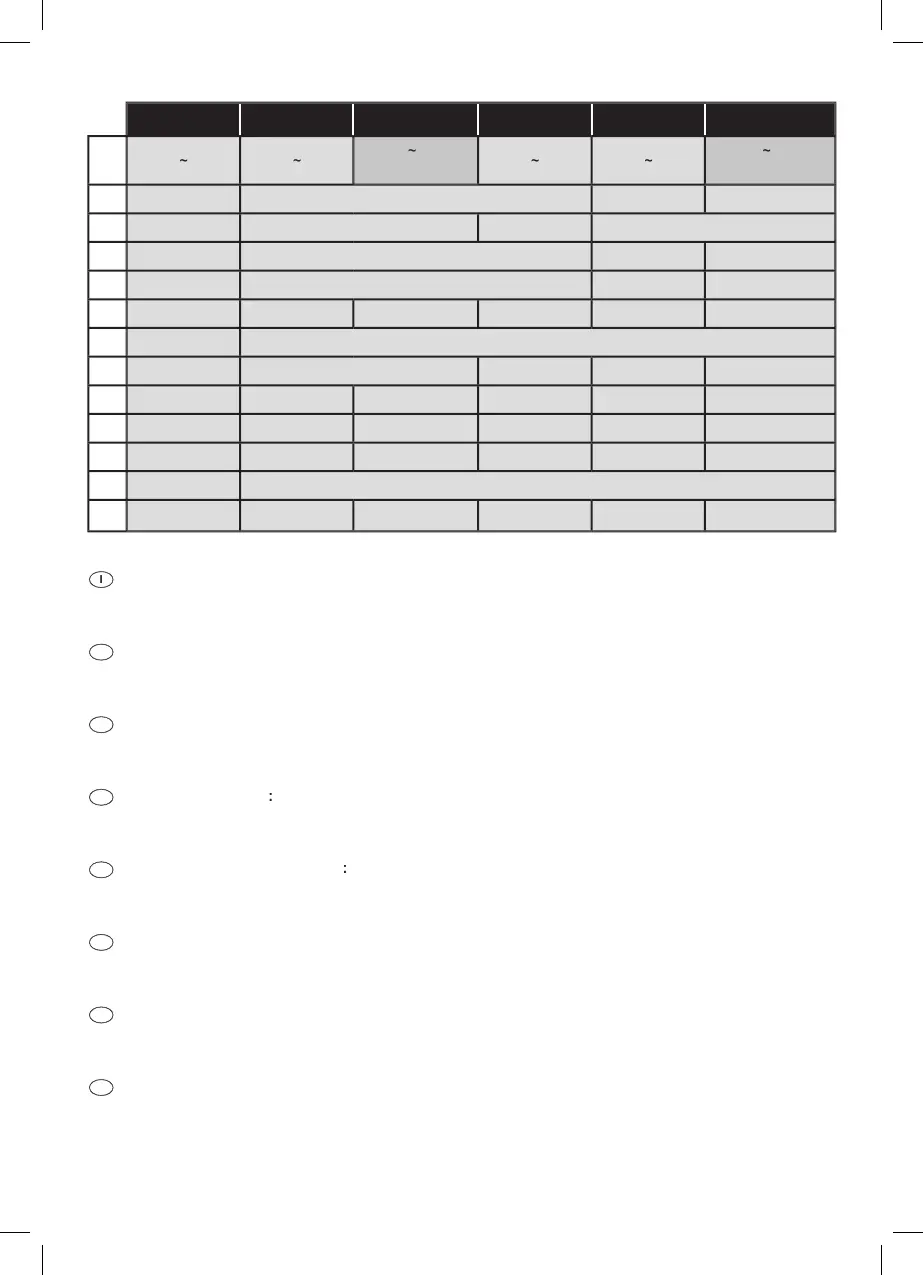 - 7) Spilsnelheden - 8) Afmetingen tafel - 9) Afmetingen grondplaat - 10) Geluidsdrukniveau - 11) Geluidsvermogenniveau - 12)