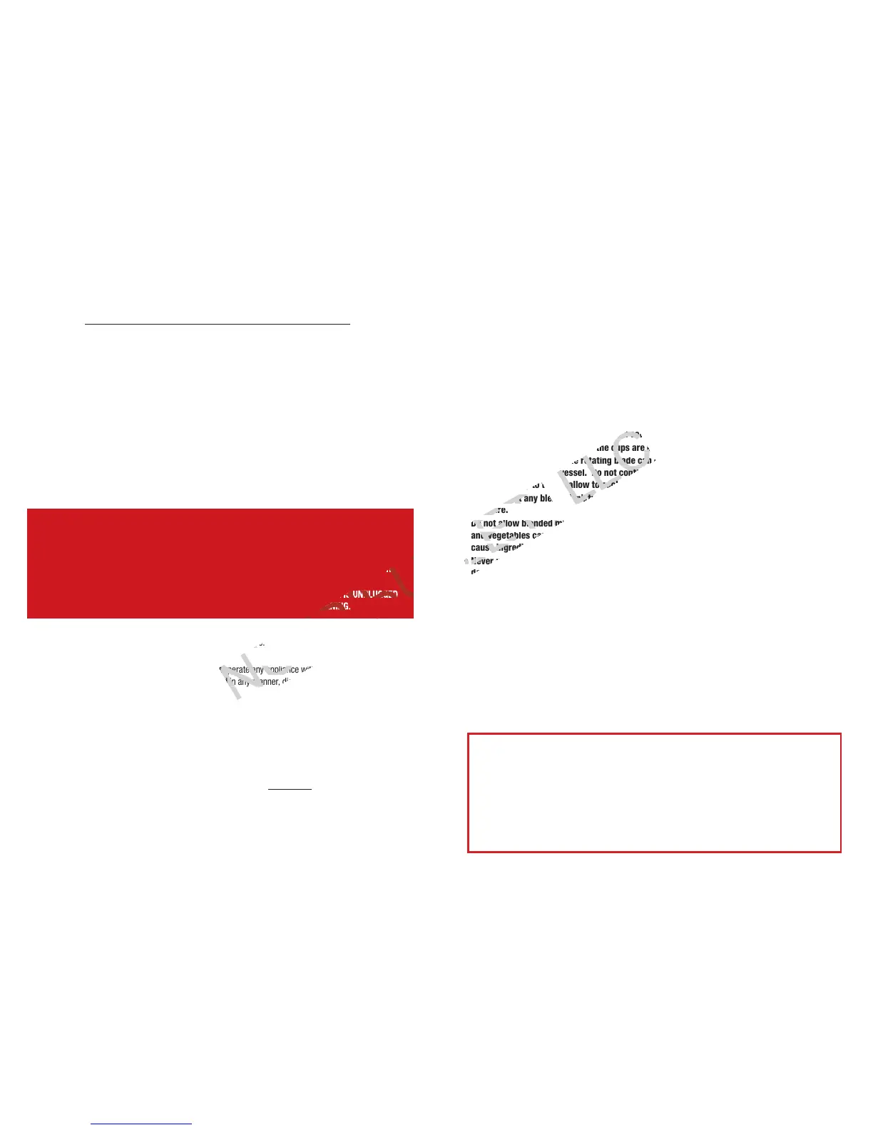 of severe personal injury or damage to the device. A scraper may be used, but only when the blender/food