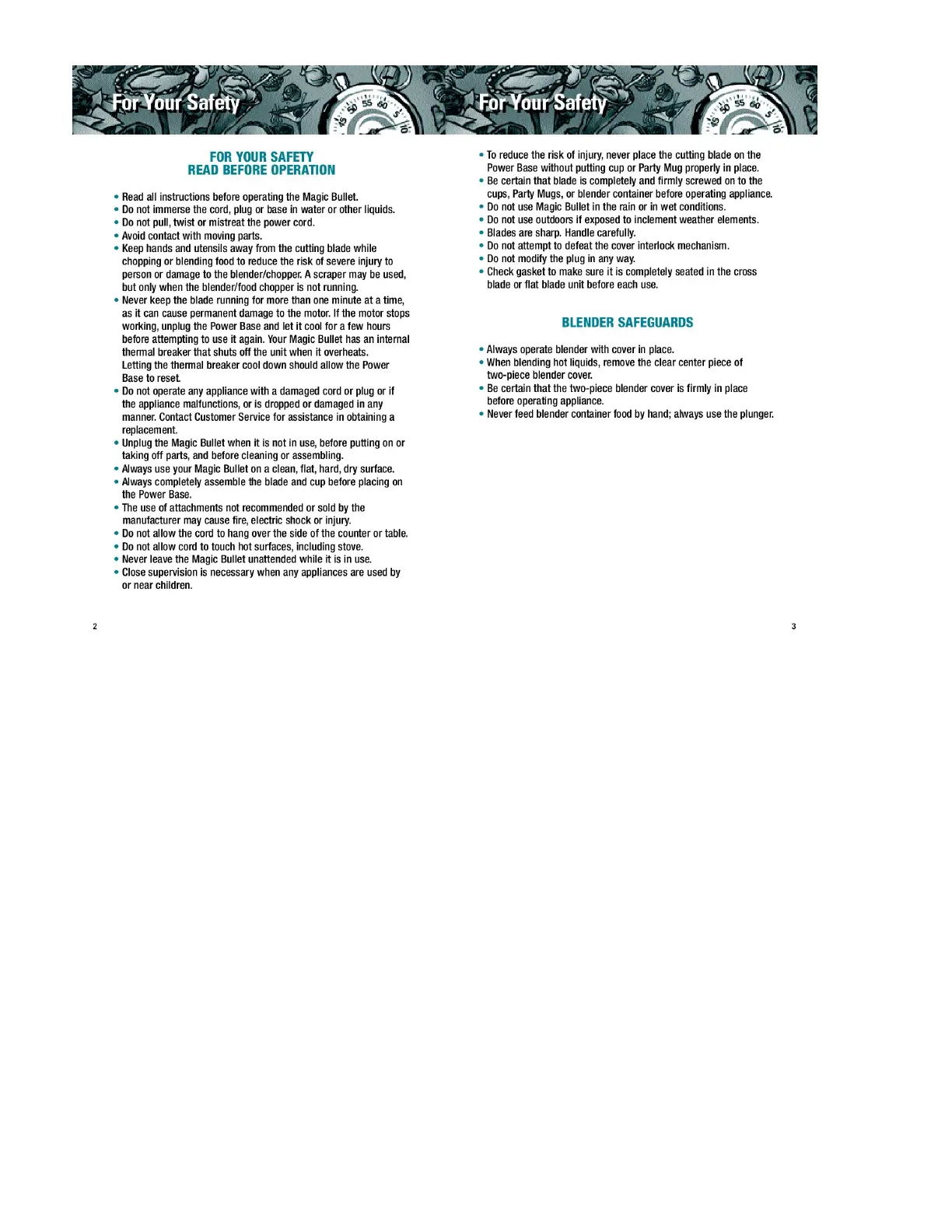 NUTRIBULLET Magic Bullet - For Your Safety; READ BEFORE OPERATION; BLENDER SAFEGUARDS
