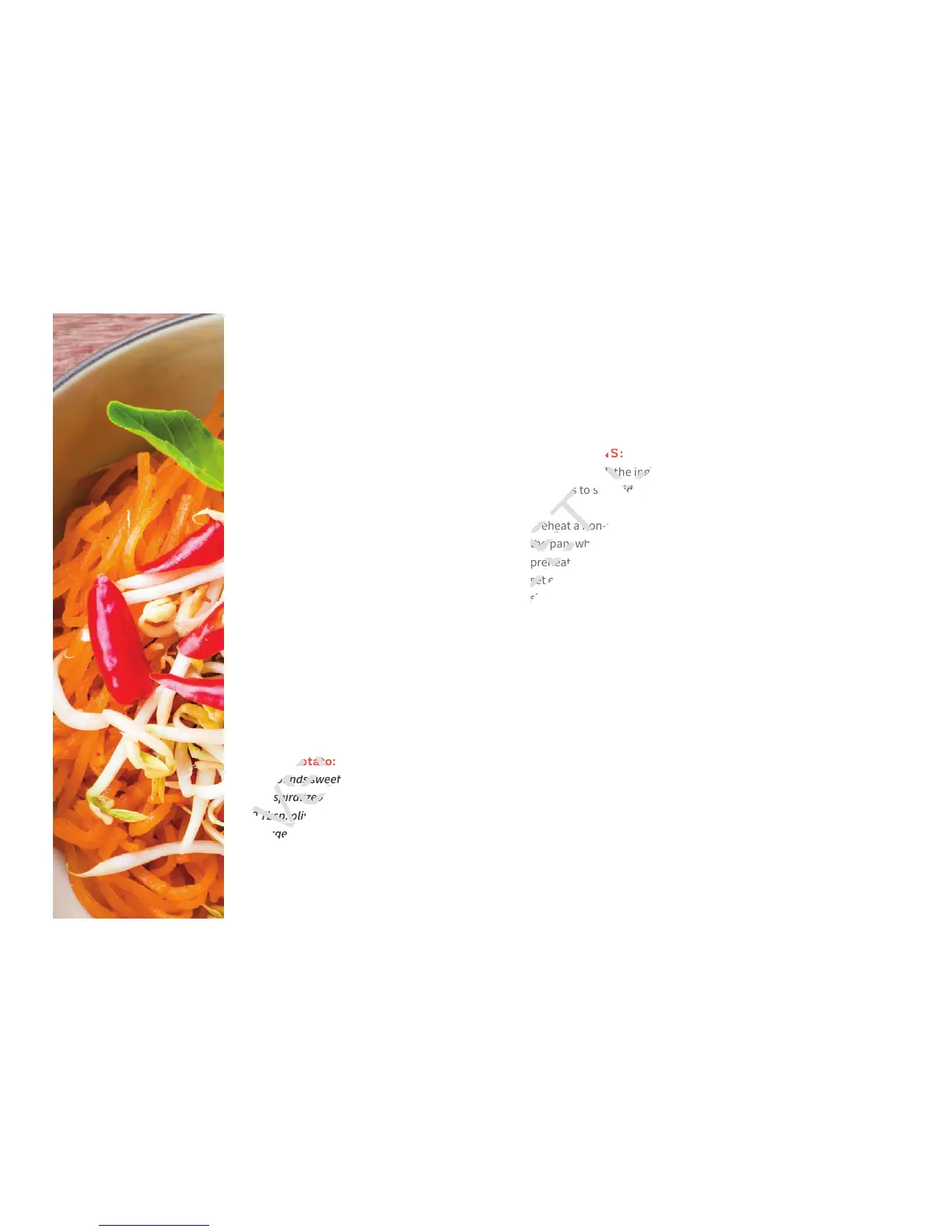 substitutes traditional rice noodles for spiralized sweet potatoes.