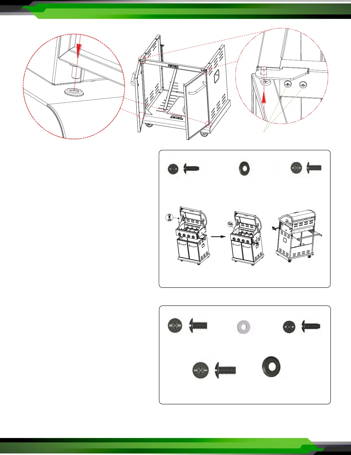• Carefully lower the grill head onto the cart.