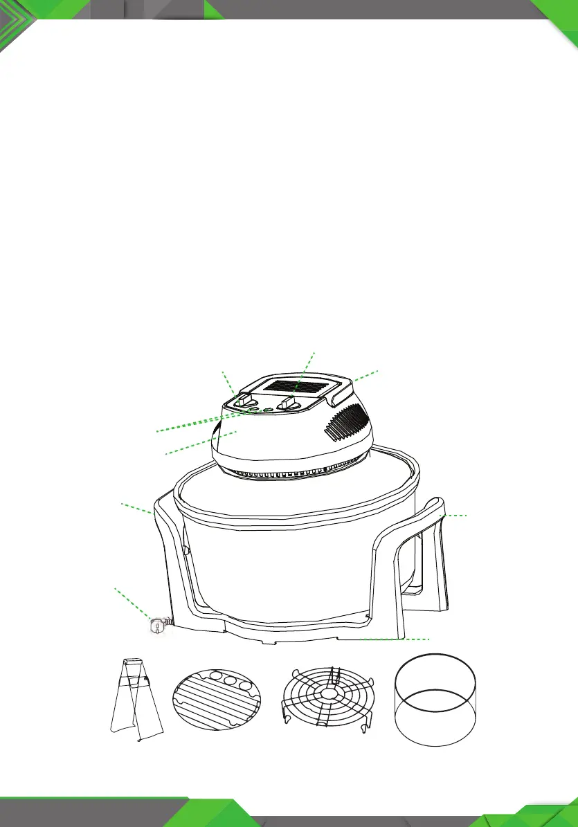 1. Thermostat: Sets the cooking temperature from 255°F to 480°F