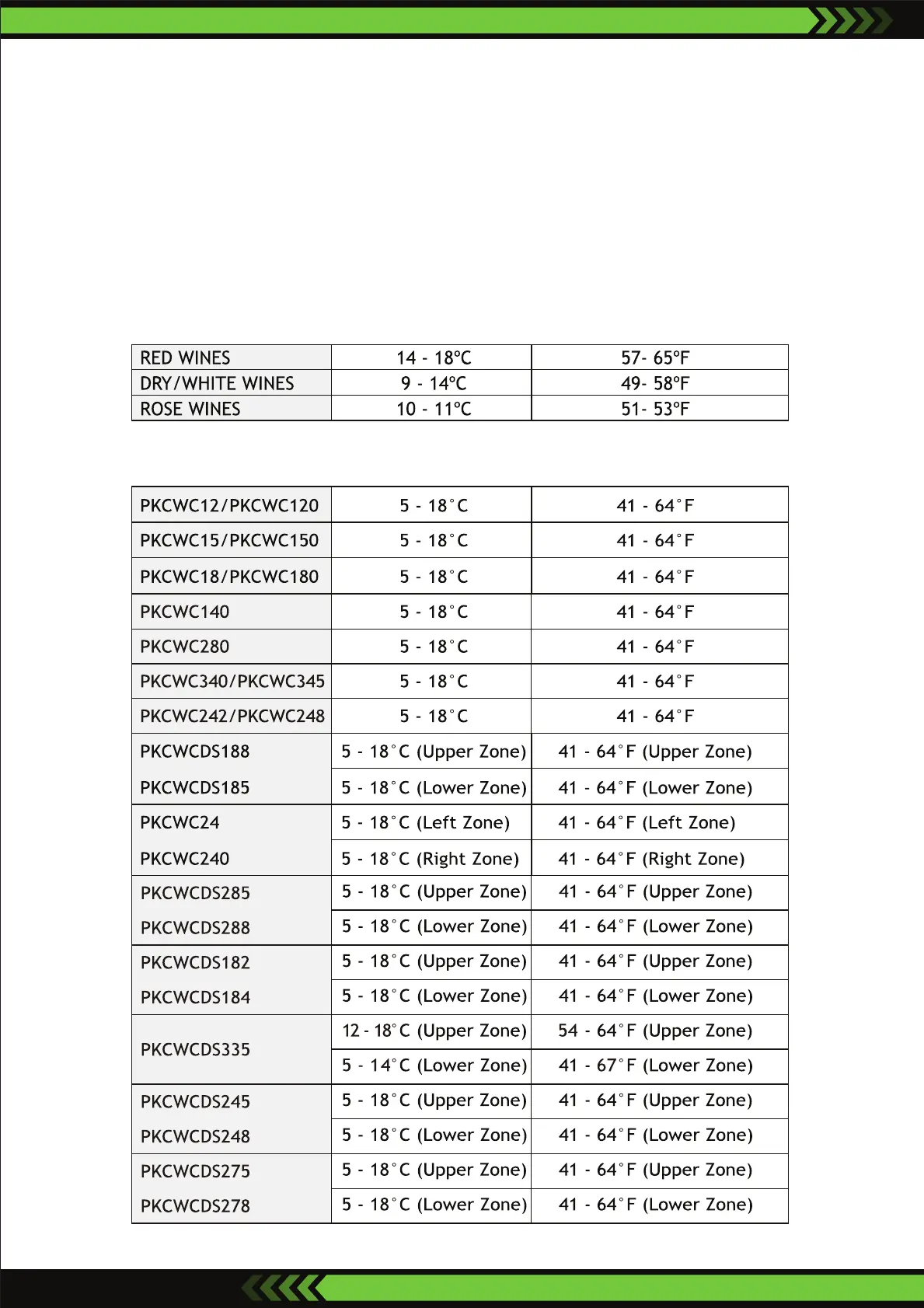 TEMPERATURE RANGES FOR YOUR WINE COOLER
