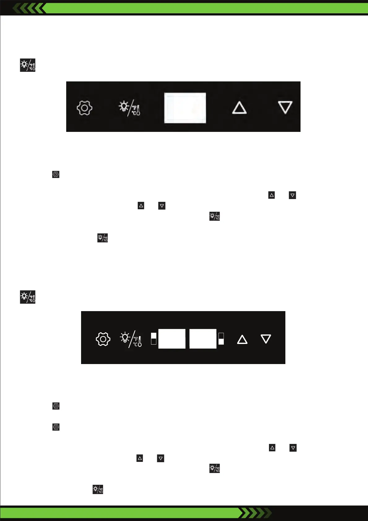panel. The two buttons on the panel and adjust the temperature in increments of 1°C or 1°F.